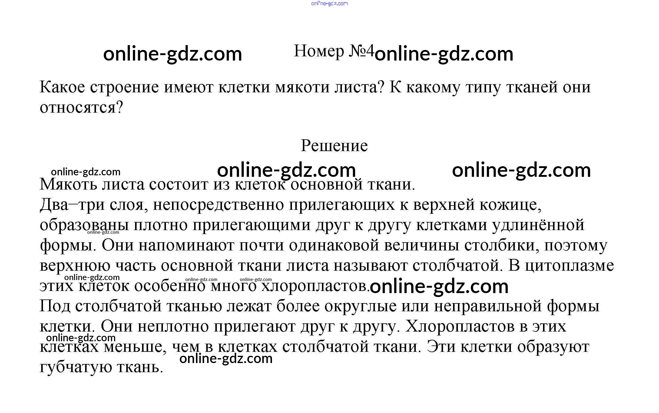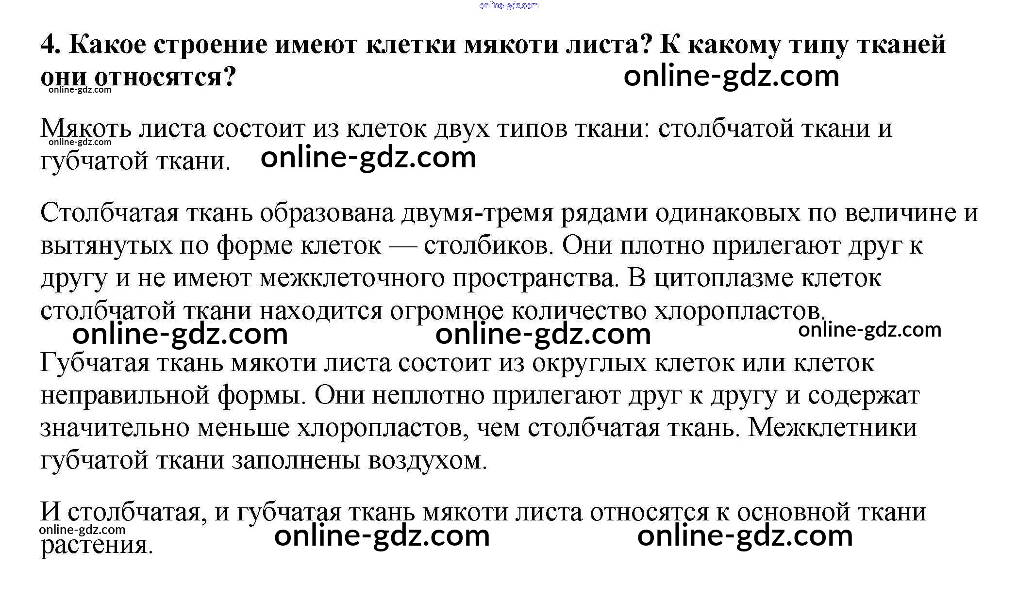 Готовые домашние задания по Биологии за 6 класс Учебник Пасечник Линейный курс 2020 - Вопросы §13. Клеточное строение листа 4