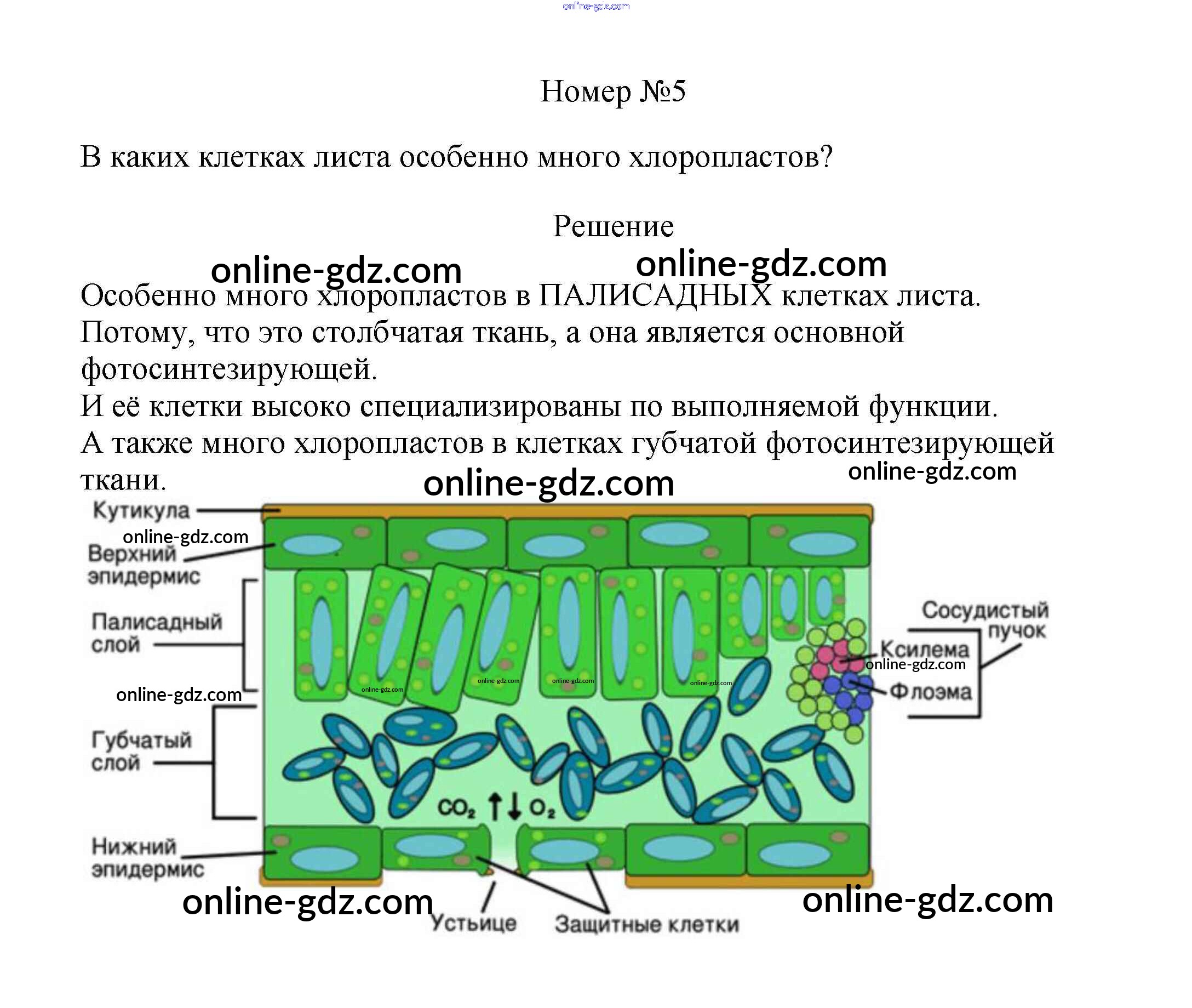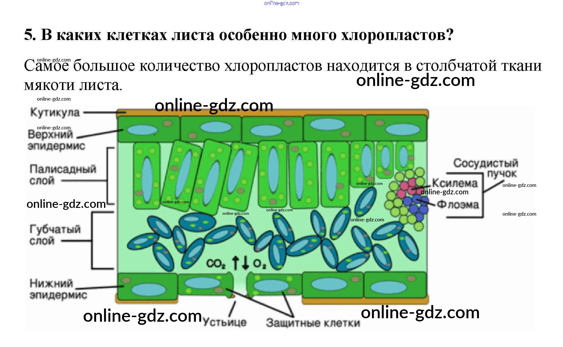 Готовые домашние задания по Биологии за 6 класс Учебник Пасечник Линейный курс 2020 - Вопросы §13. Клеточное строение листа 5