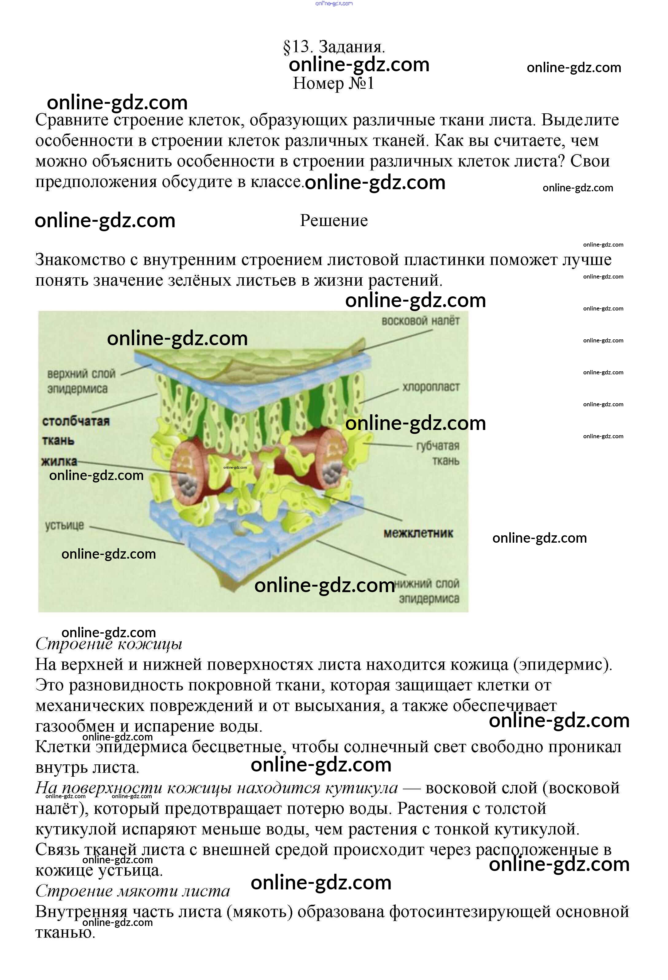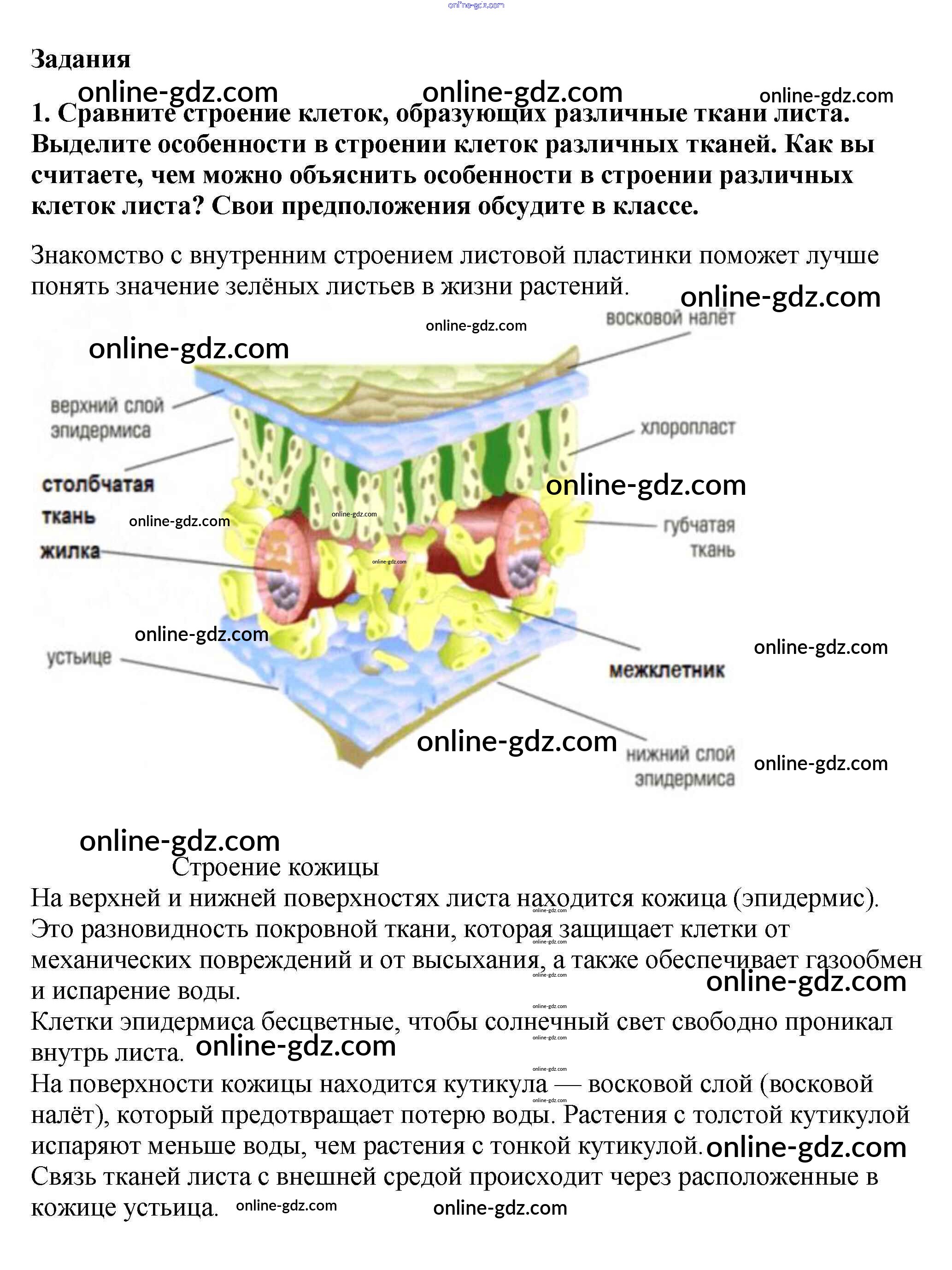 Готовые домашние задания по Биологии за 6 класс Учебник Пасечник Линейный курс 2020 - Задания §13. Клеточное строение листа 1