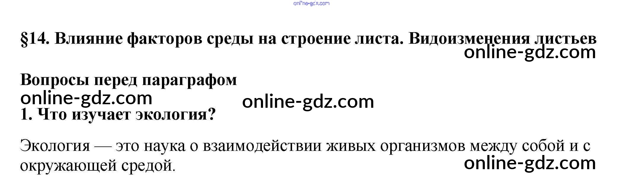Готовые домашние задания по Биологии за 6 класс Учебник Пасечник Линейный курс 2020 - Вопросы перед параграфом §14. Влияние факторов среды на строение листа. Видоизменения листьев 1
