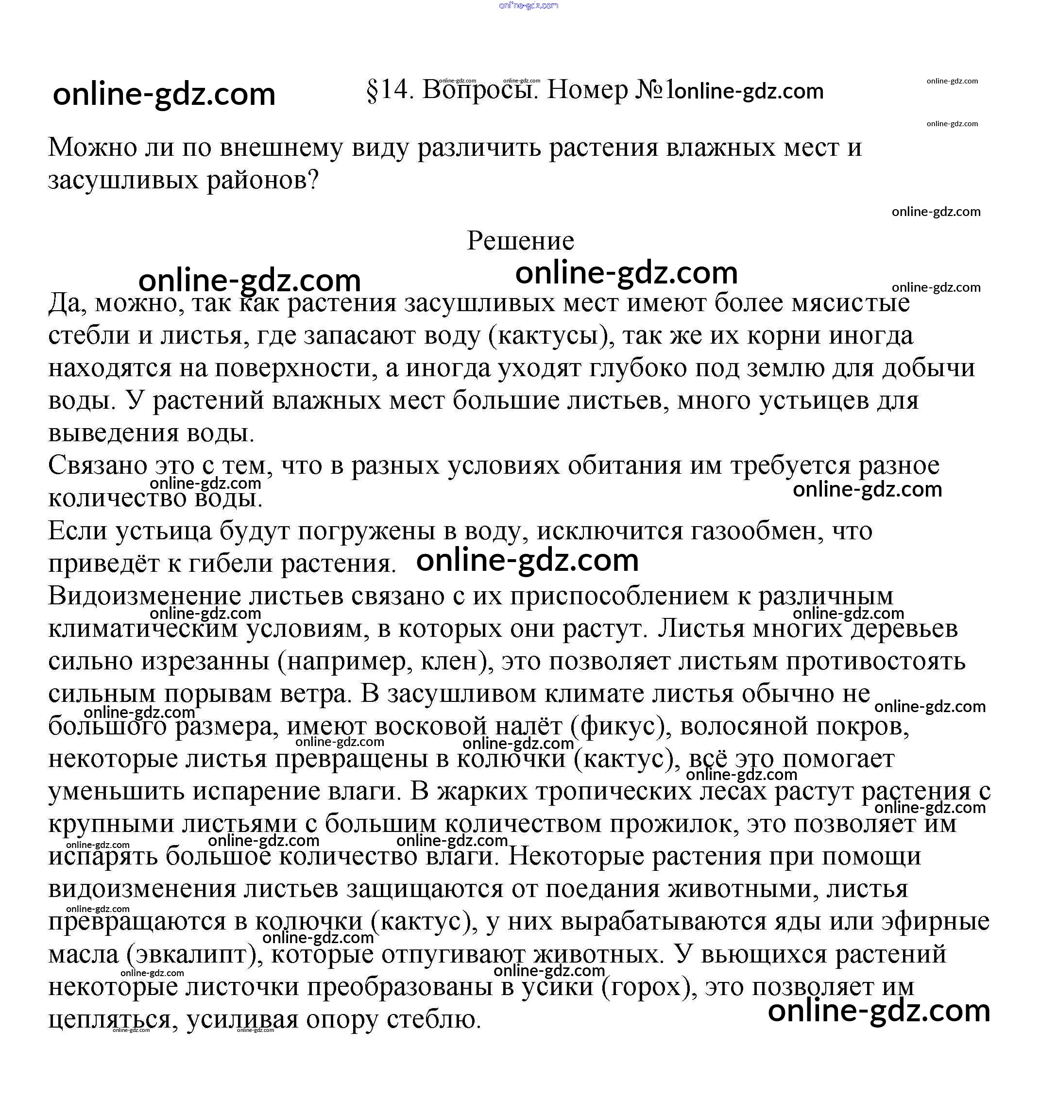 Готовые домашние задания по Биологии за 6 класс Учебник Пасечник Линейный курс 2020 - Вопросы §14. Влияние факторов среды на строение листа. Видоизменения листьев 1