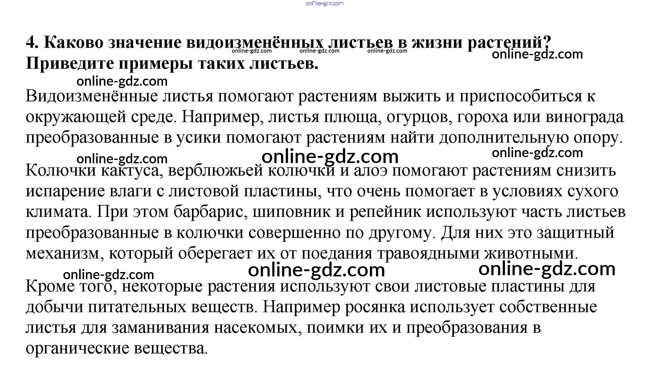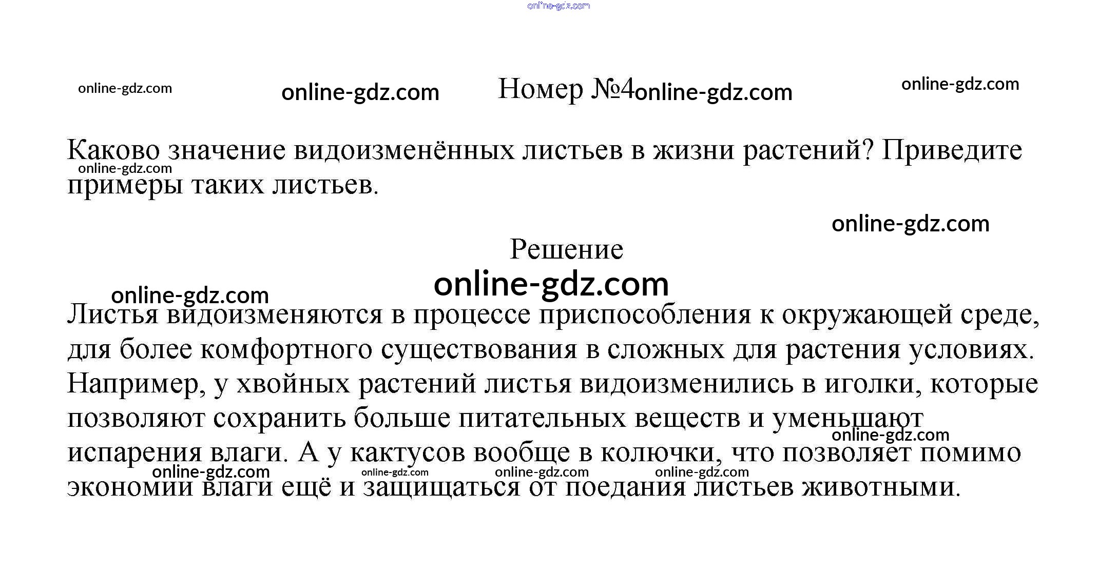 Готовые домашние задания по Биологии за 6 класс Учебник Пасечник Линейный курс 2020 - Вопросы §14. Влияние факторов среды на строение листа. Видоизменения листьев 4