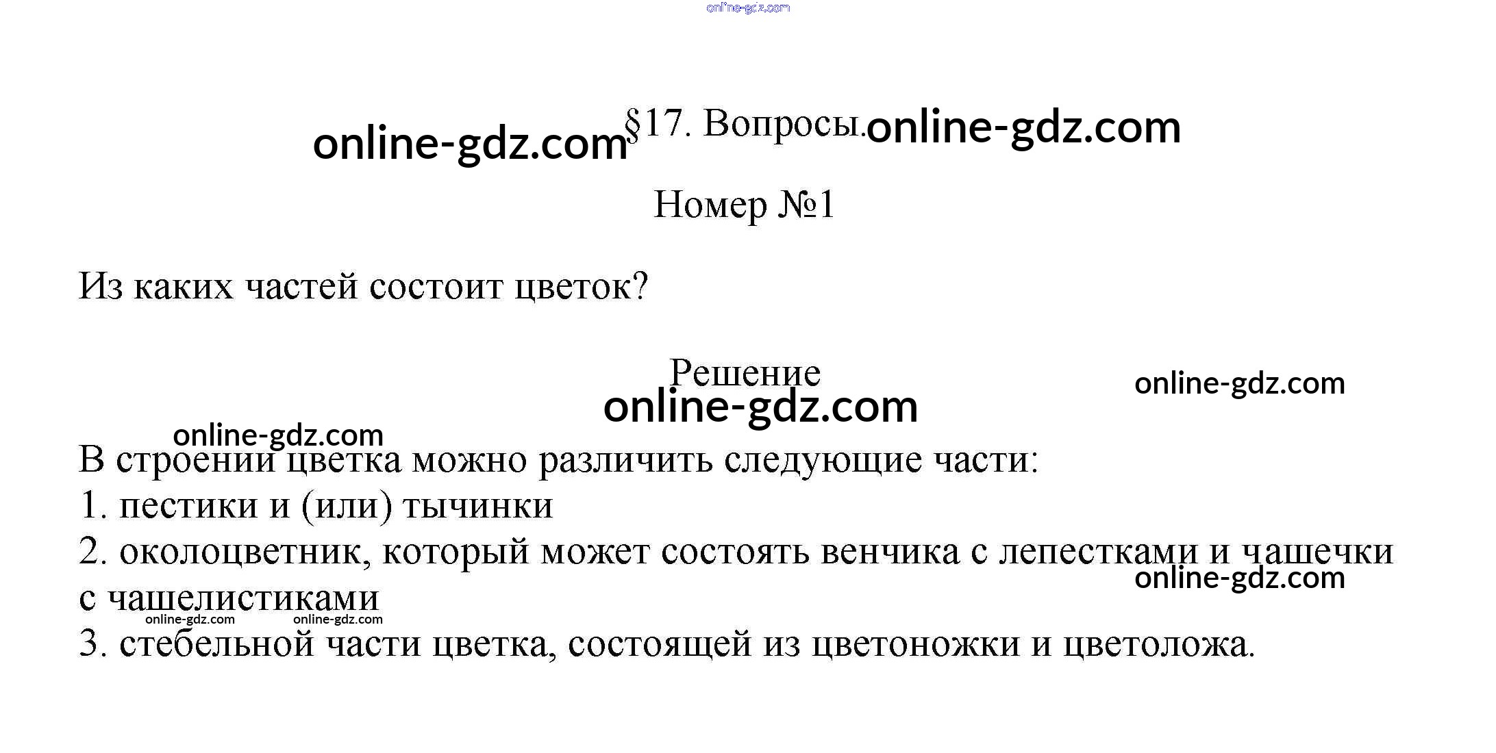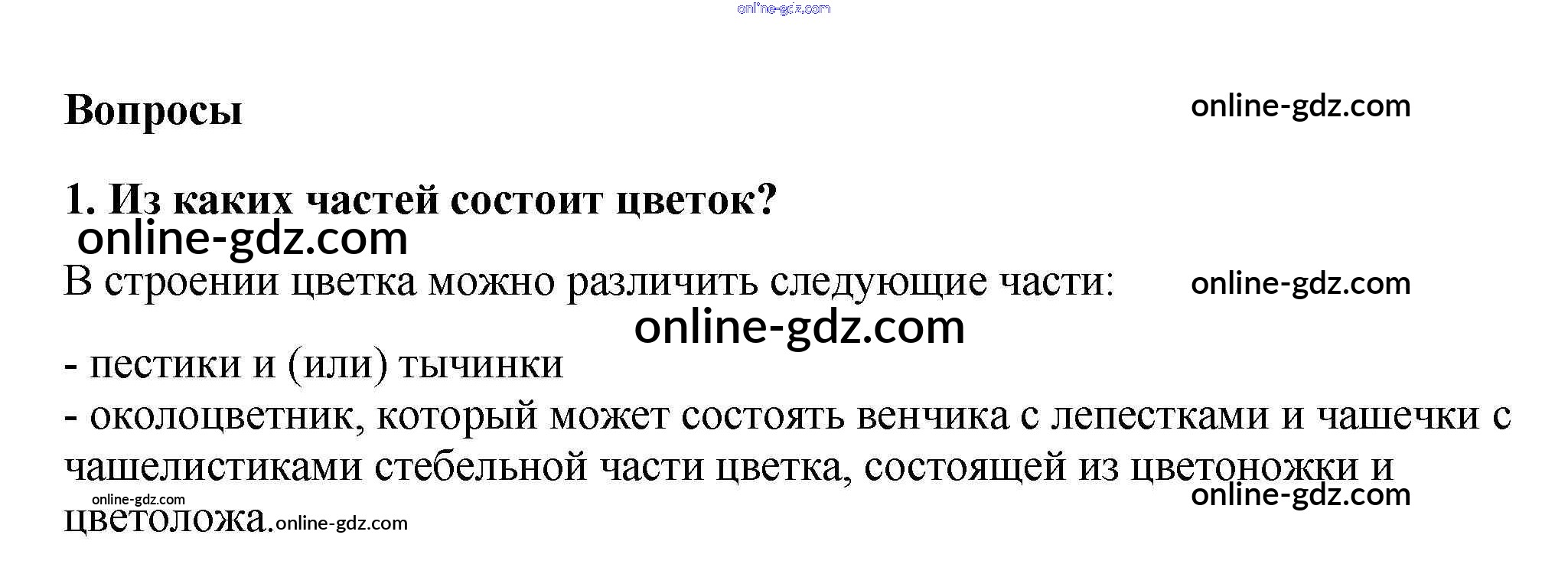 Готовые домашние задания по Биологии за 6 класс Учебник Пасечник Линейный курс 2020 - Вопросы §17. Цветок 1