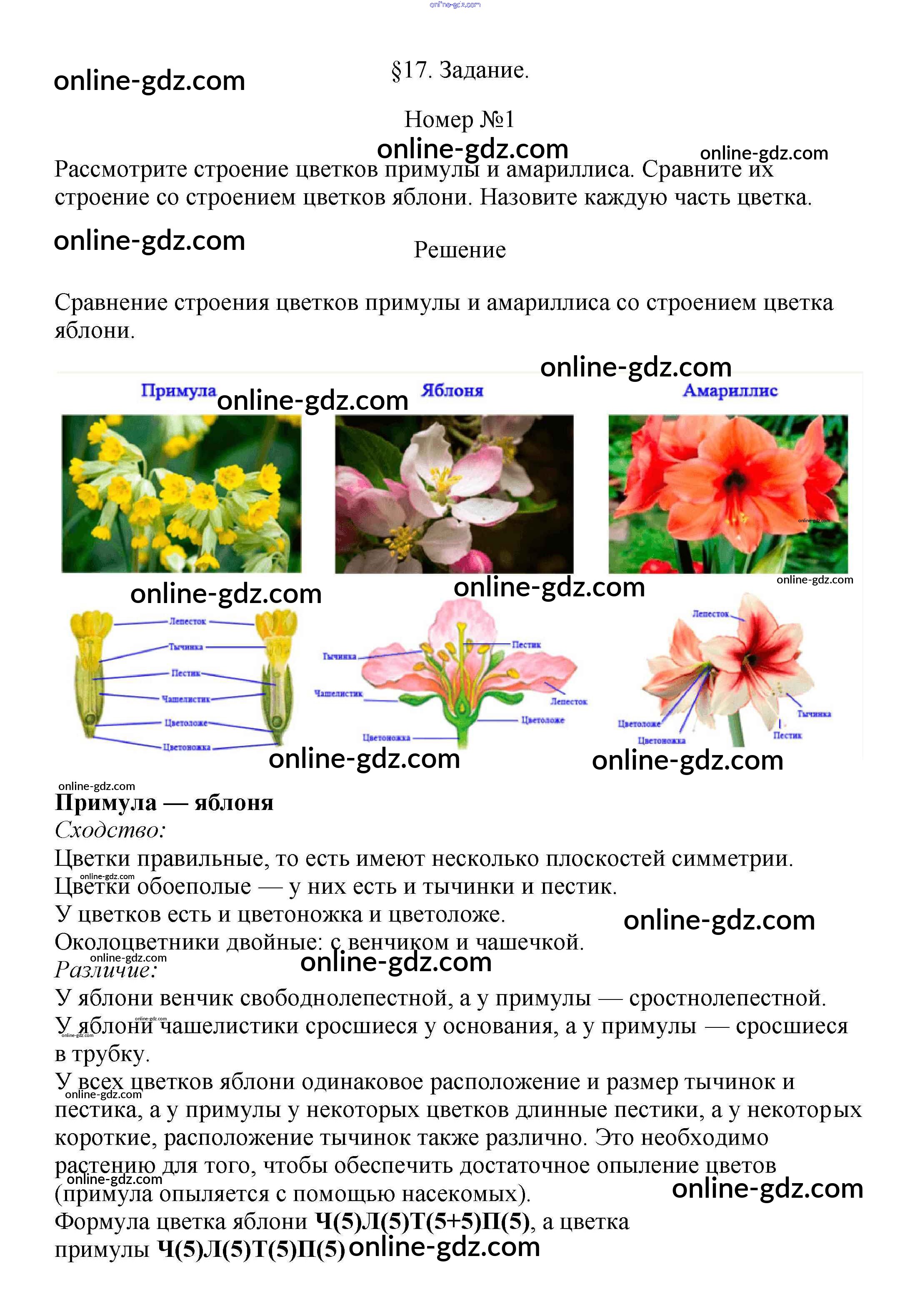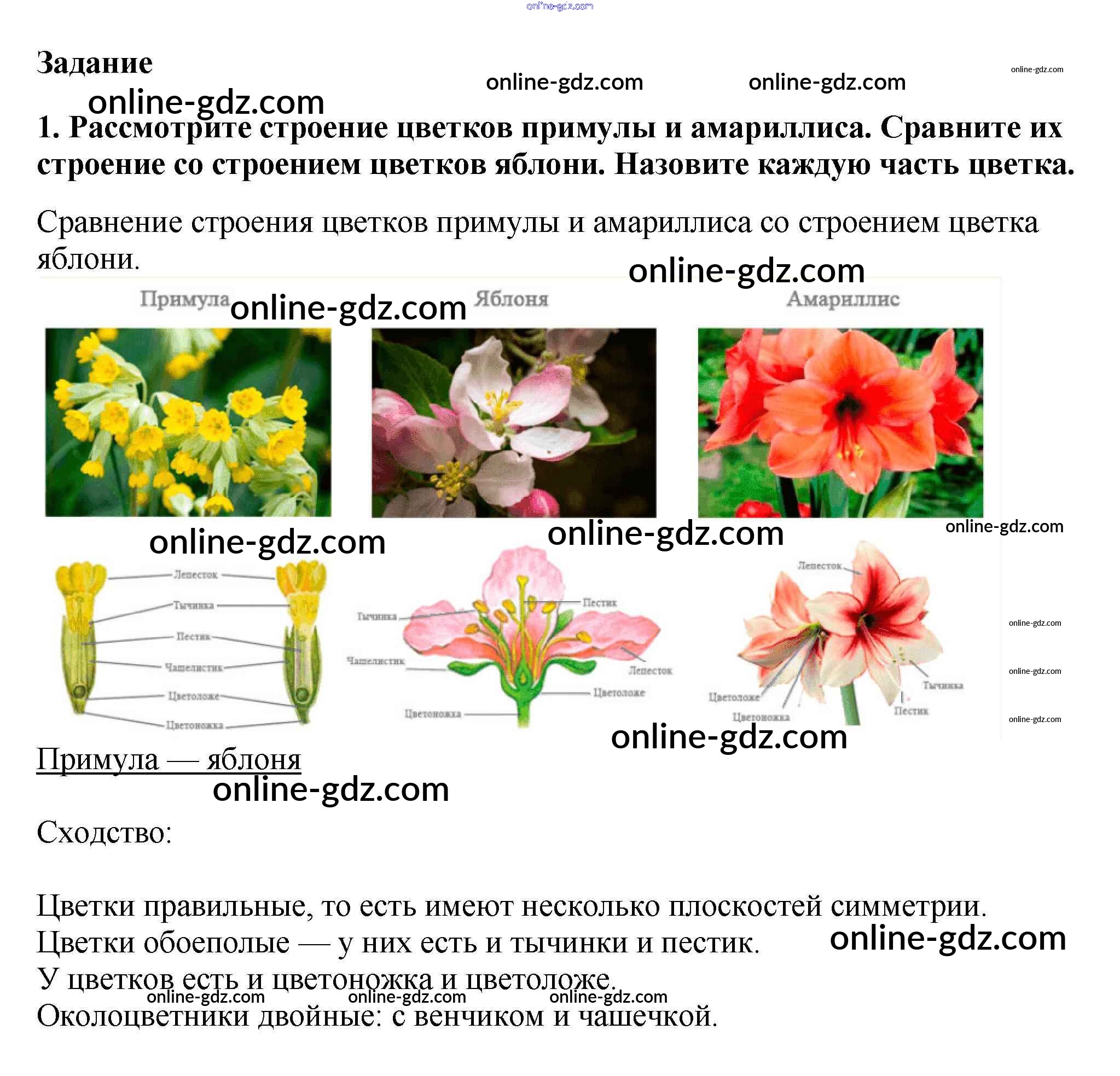 Готовые домашние задания по Биологии за 6 класс Учебник Пасечник Линейный курс 2020 - Задания §17. Цветок 1