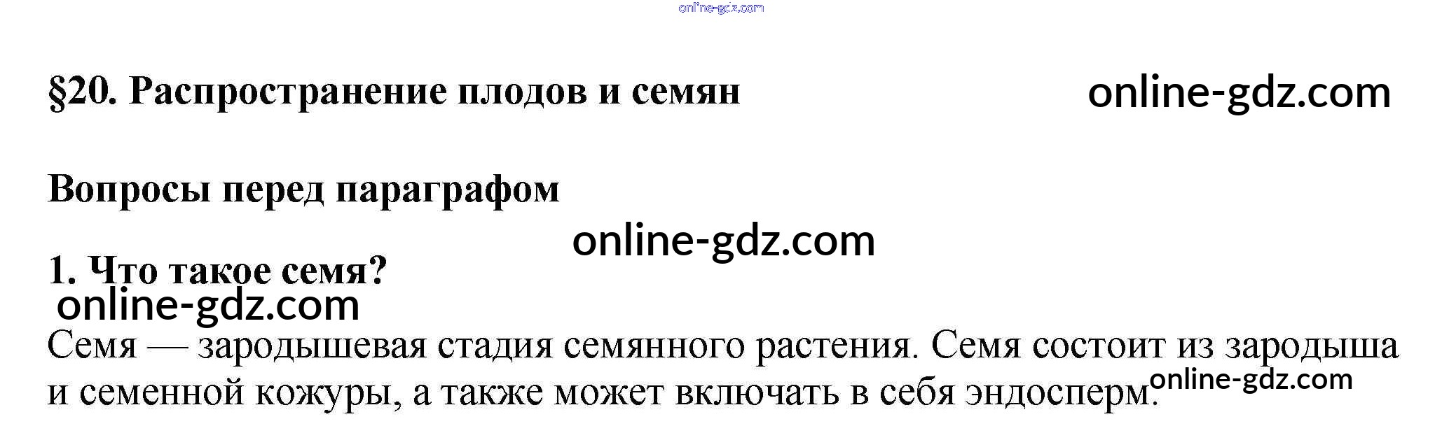 Готовые домашние задания по Биологии за 6 класс Учебник Пасечник Линейный курс 2020 - Вопросы перед параграфом §20. Распространение плодов и семян 1