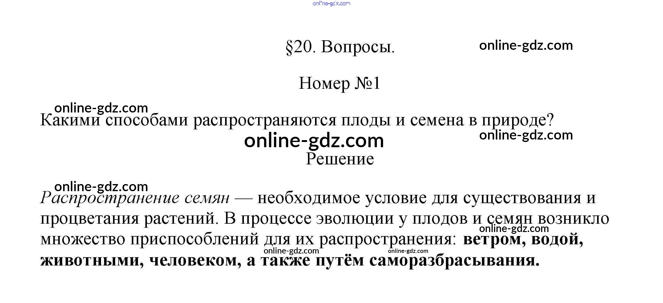 Готовые домашние задания по Биологии за 6 класс Учебник Пасечник Линейный курс 2020 - Вопросы §20. Распространение плодов и семян 1
