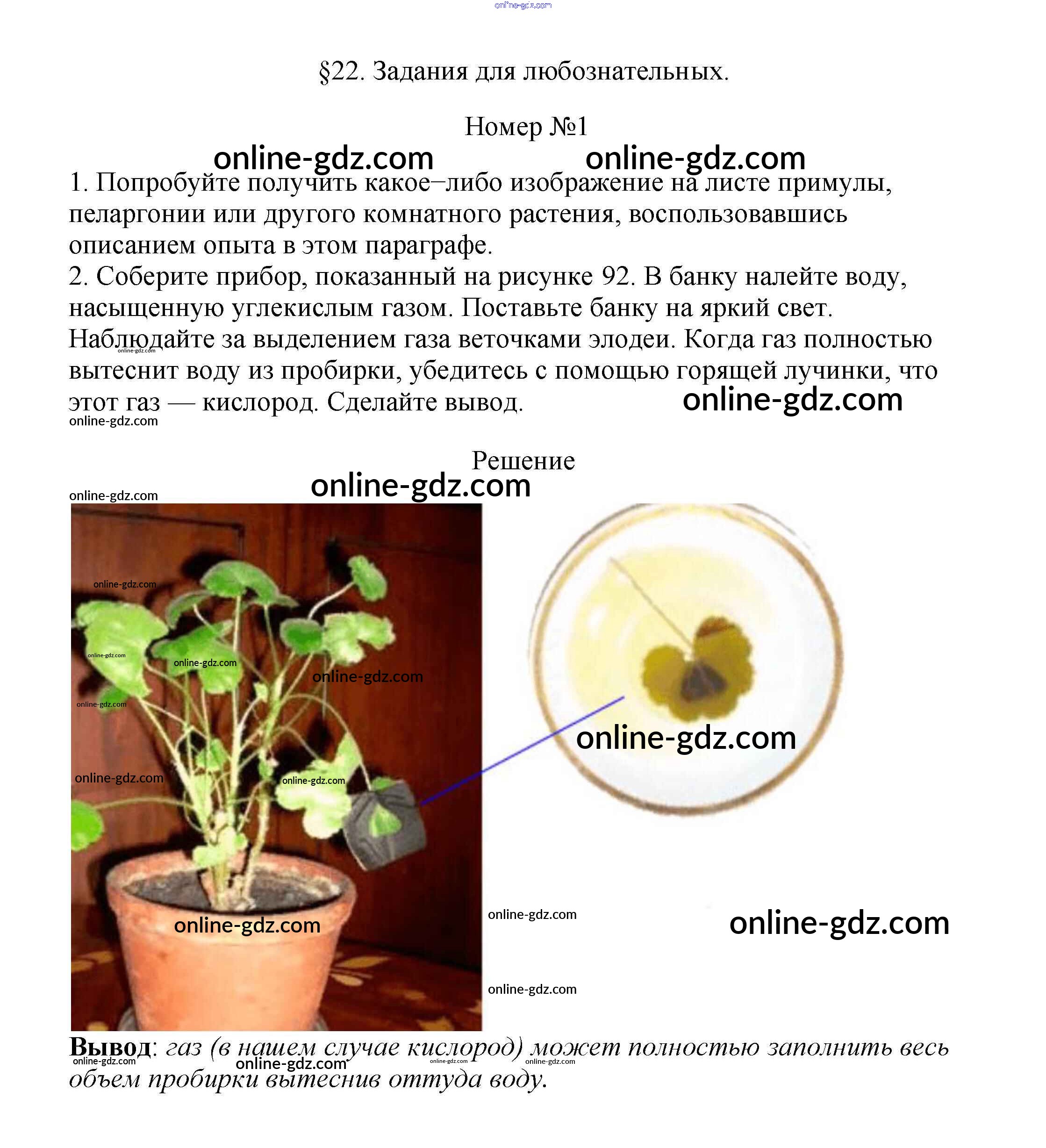 Готовые домашние задания по Биологии за 6 класс Учебник Пасечник Линейный курс 2020 - Задания для любознательных §22. Фотосинтез 1
