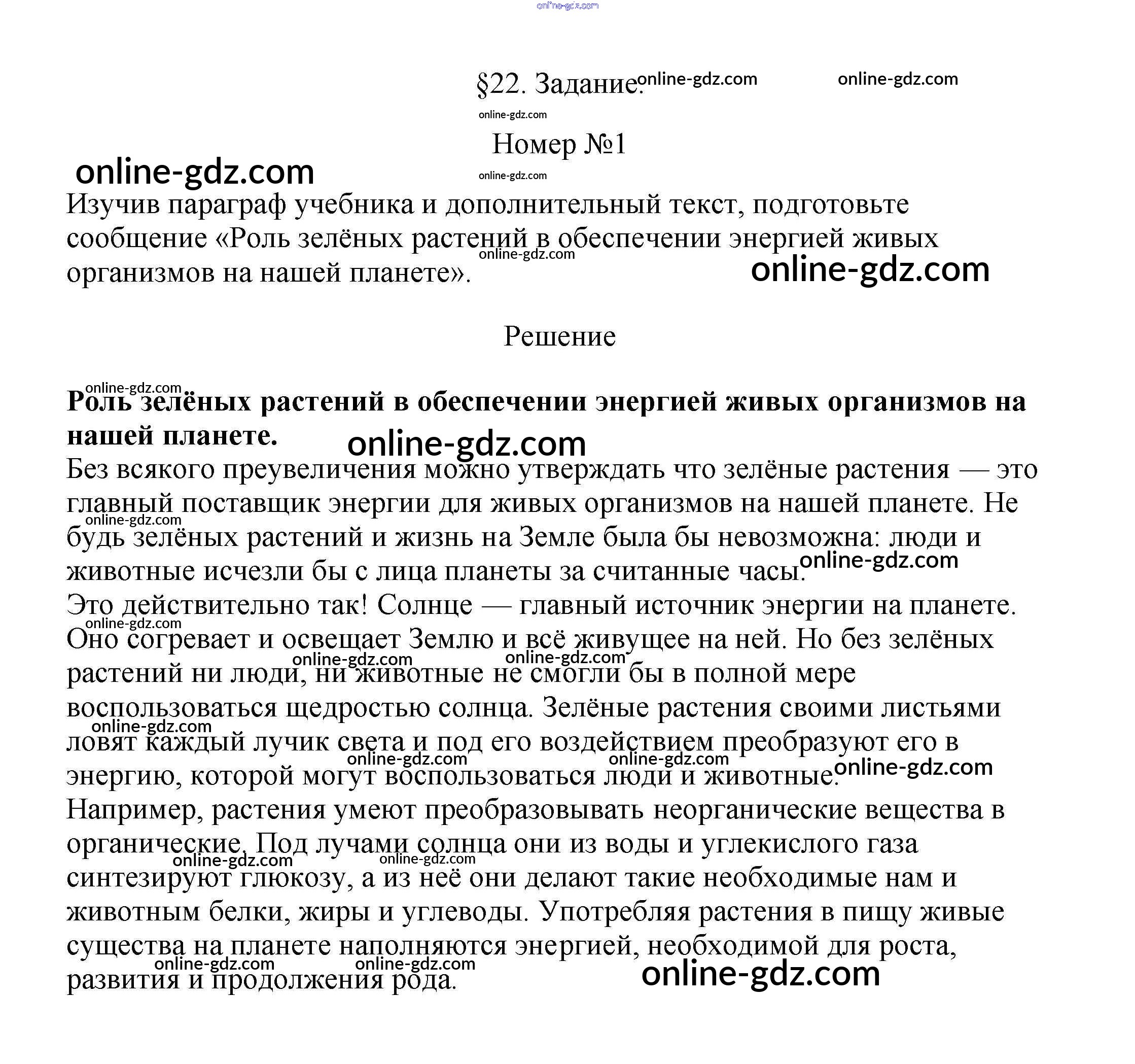 Готовые домашние задания по Биологии за 6 класс Учебник Пасечник Линейный курс 2020 - Задание §22. Фотосинтез 1