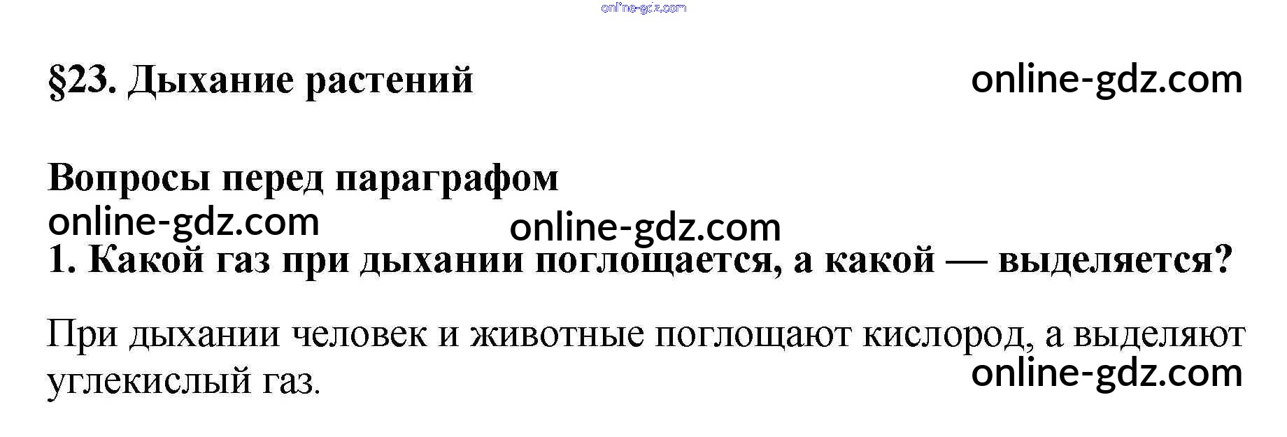 Готовые домашние задания по Биологии за 6 класс Учебник Пасечник Линейный курс 2020 - Вопросы перед параграфом §23. Дыхание растений 1