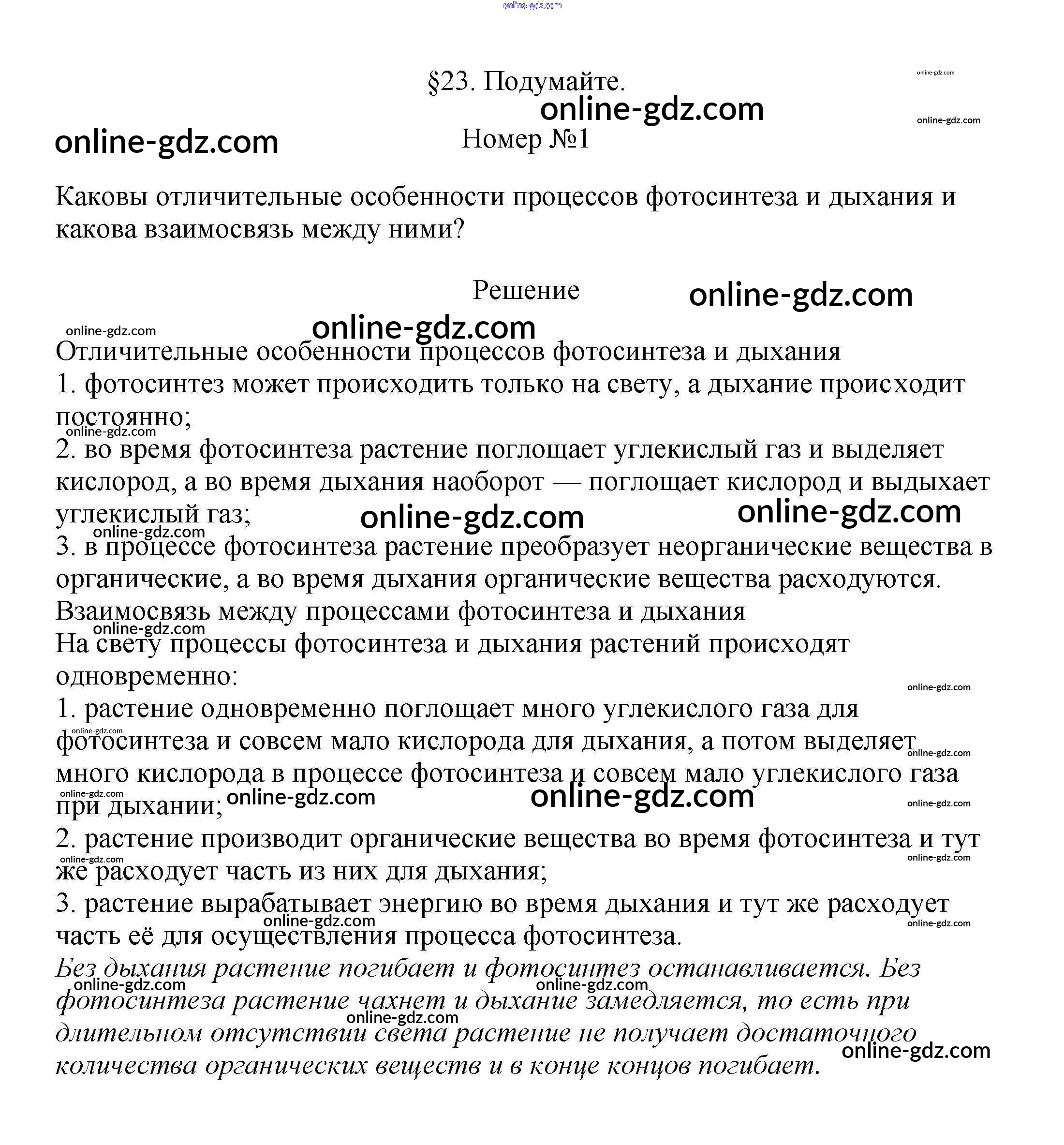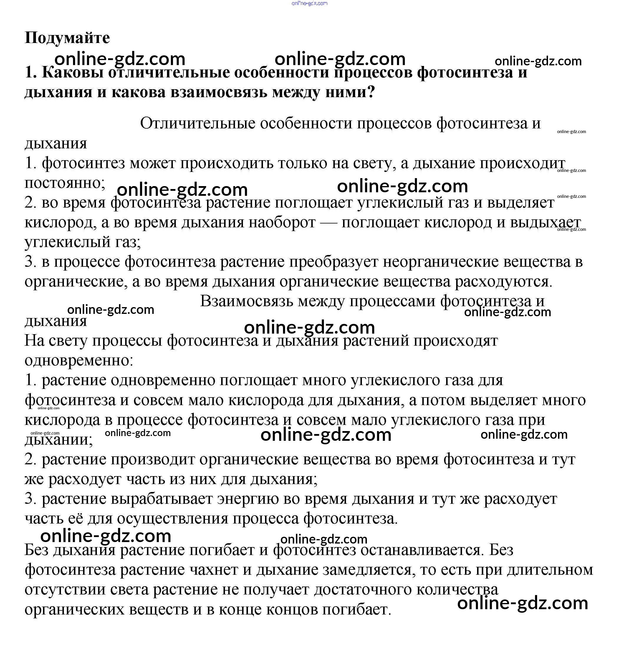 Готовые домашние задания по Биологии за 6 класс Учебник Пасечник Линейный курс 2020 - Подумайте §23. Дыхание растений 1
