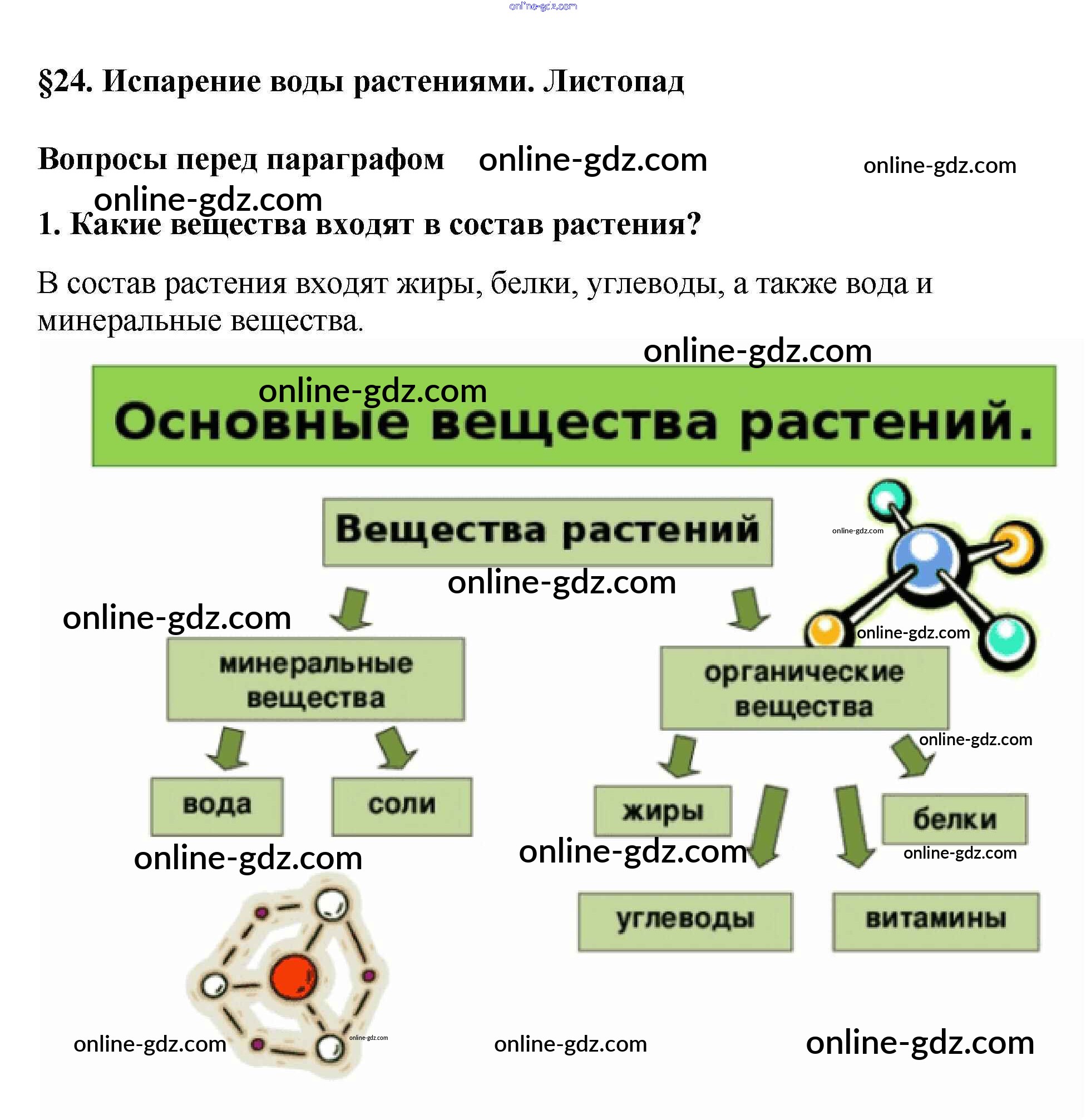 Готовые домашние задания по Биологии за 6 класс Учебник Пасечник Линейный курс 2020 - Вопросы перед параграфом §24. Испарение воды растениями. Листопад 1