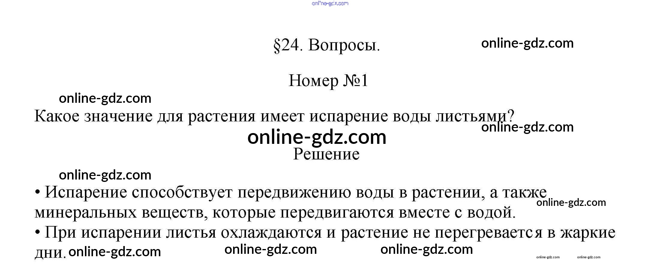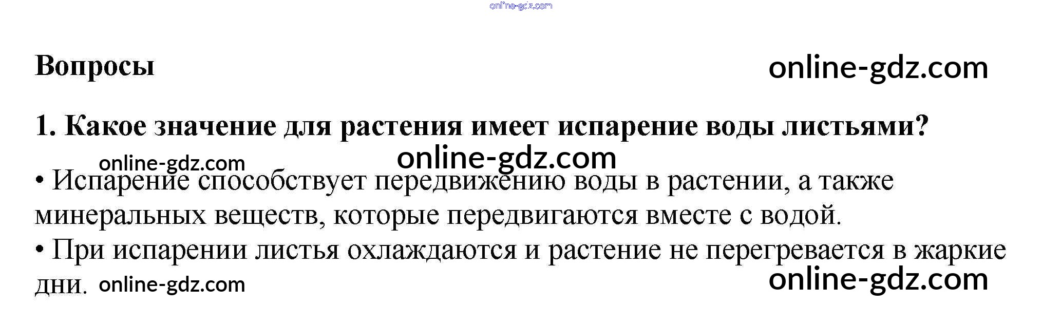 Готовые домашние задания по Биологии за 6 класс Учебник Пасечник Линейный курс 2020 - Вопросы §24. Испарение воды растениями. Листопад 1