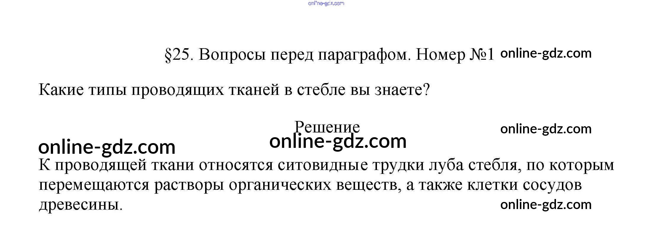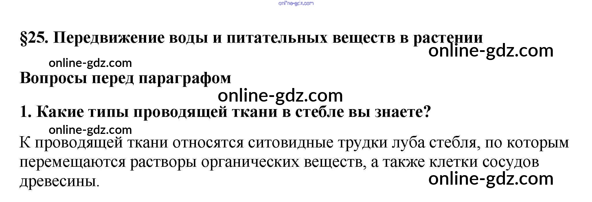 Готовые домашние задания по Биологии за 6 класс Учебник Пасечник Линейный курс 2020 - Вопросы перед параграфом §25. Передвижение воды и питательных веществ в растении 1