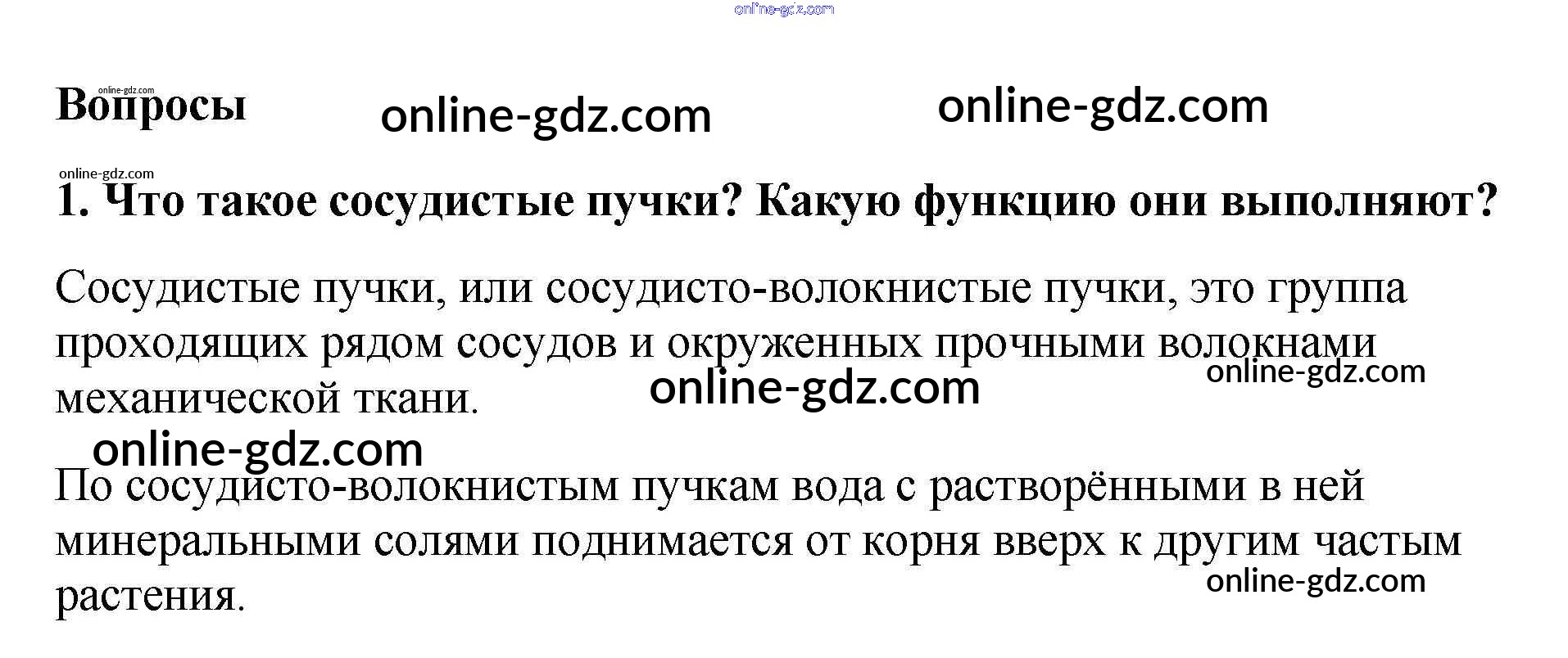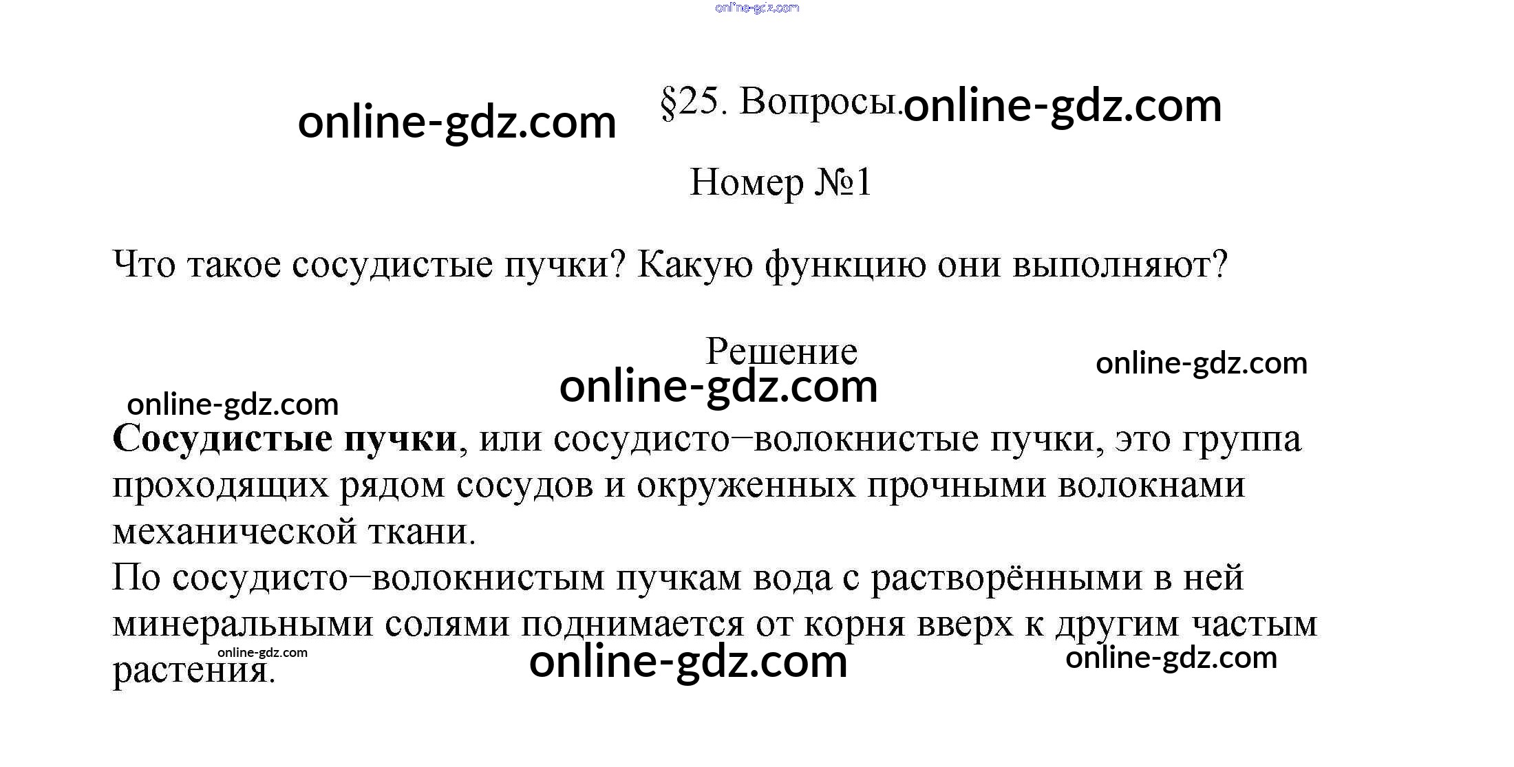 Готовые домашние задания по Биологии за 6 класс Учебник Пасечник Линейный курс 2020 - Вопросы §25. Передвижение воды и питательных веществ в растении 1
