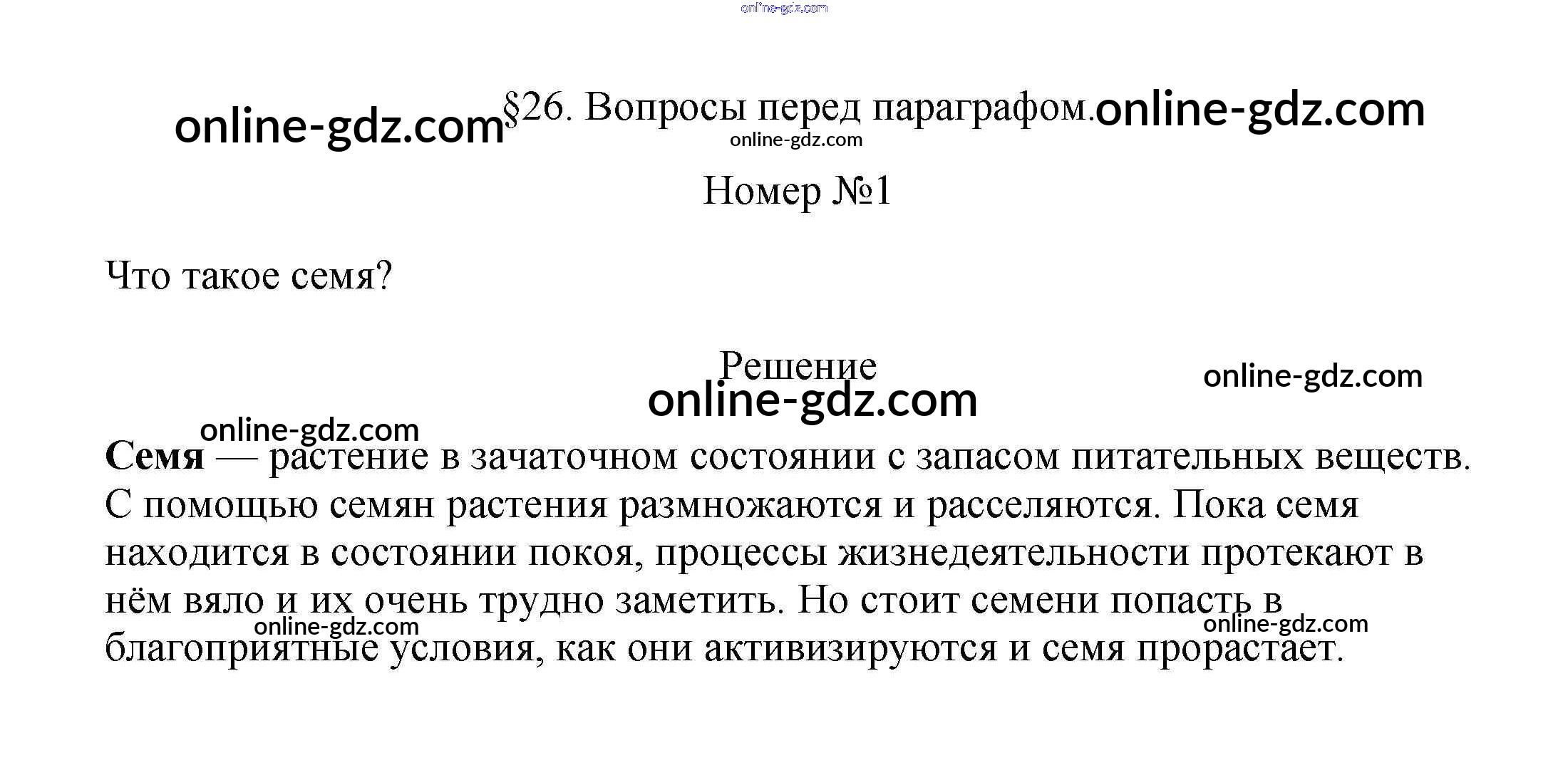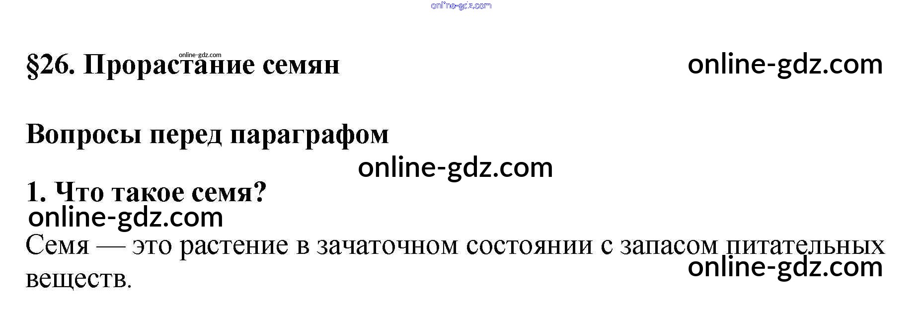 Готовые домашние задания по Биологии за 6 класс Учебник Пасечник Линейный курс 2020 - Вопросы перед параграфом §26. Прорастание семян 1