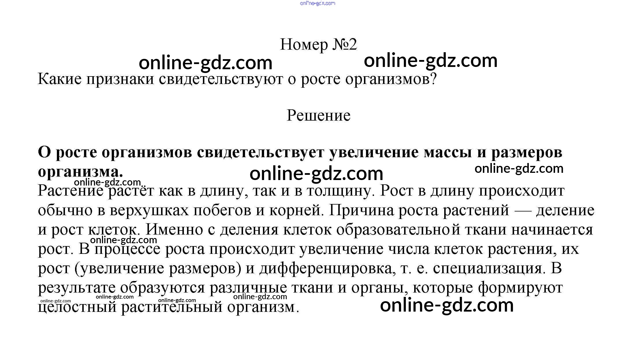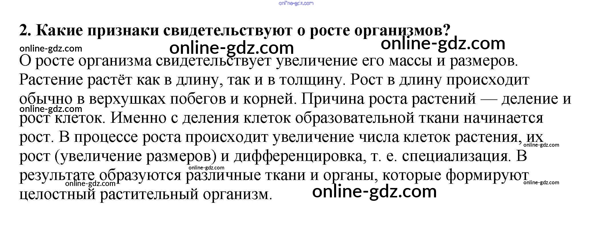 Готовые домашние задания по Биологии за 6 класс Учебник Пасечник Линейный курс 2020 - Вопросы перед параграфом §27. Рост и развитие растений 2