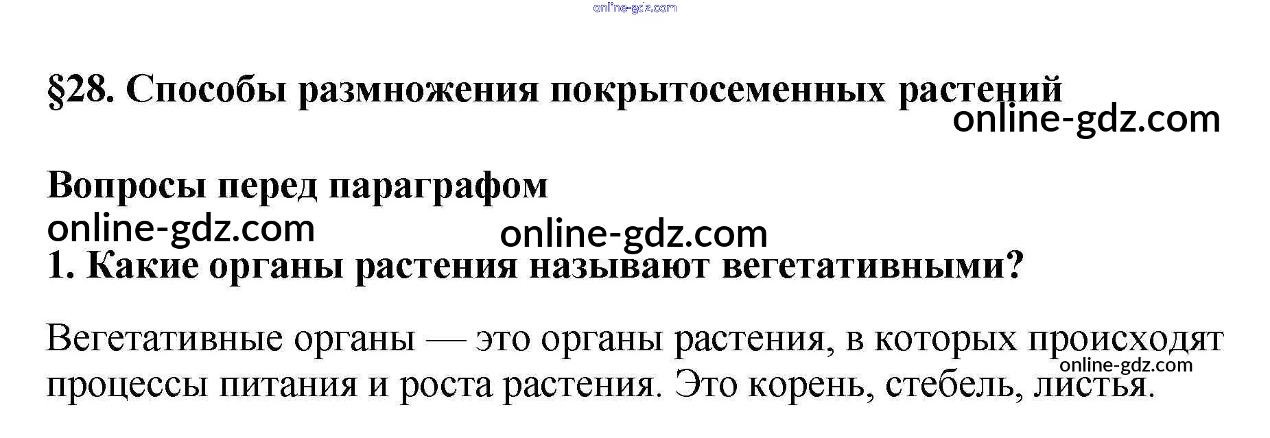 Готовые домашние задания по Биологии за 6 класс Учебник Пасечник Линейный курс 2020 - Вопросы перед параграфом §28. Способы размножения покрытосеменных растений 1