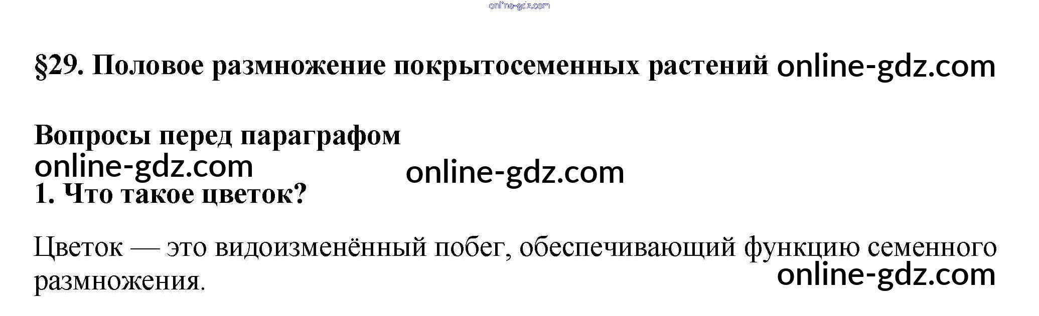 Готовые домашние задания по Биологии за 6 класс Учебник Пасечник Линейный курс 2020 - Вопросы перед параграфом §29. Половое размножение покрытосеменных растений 1
