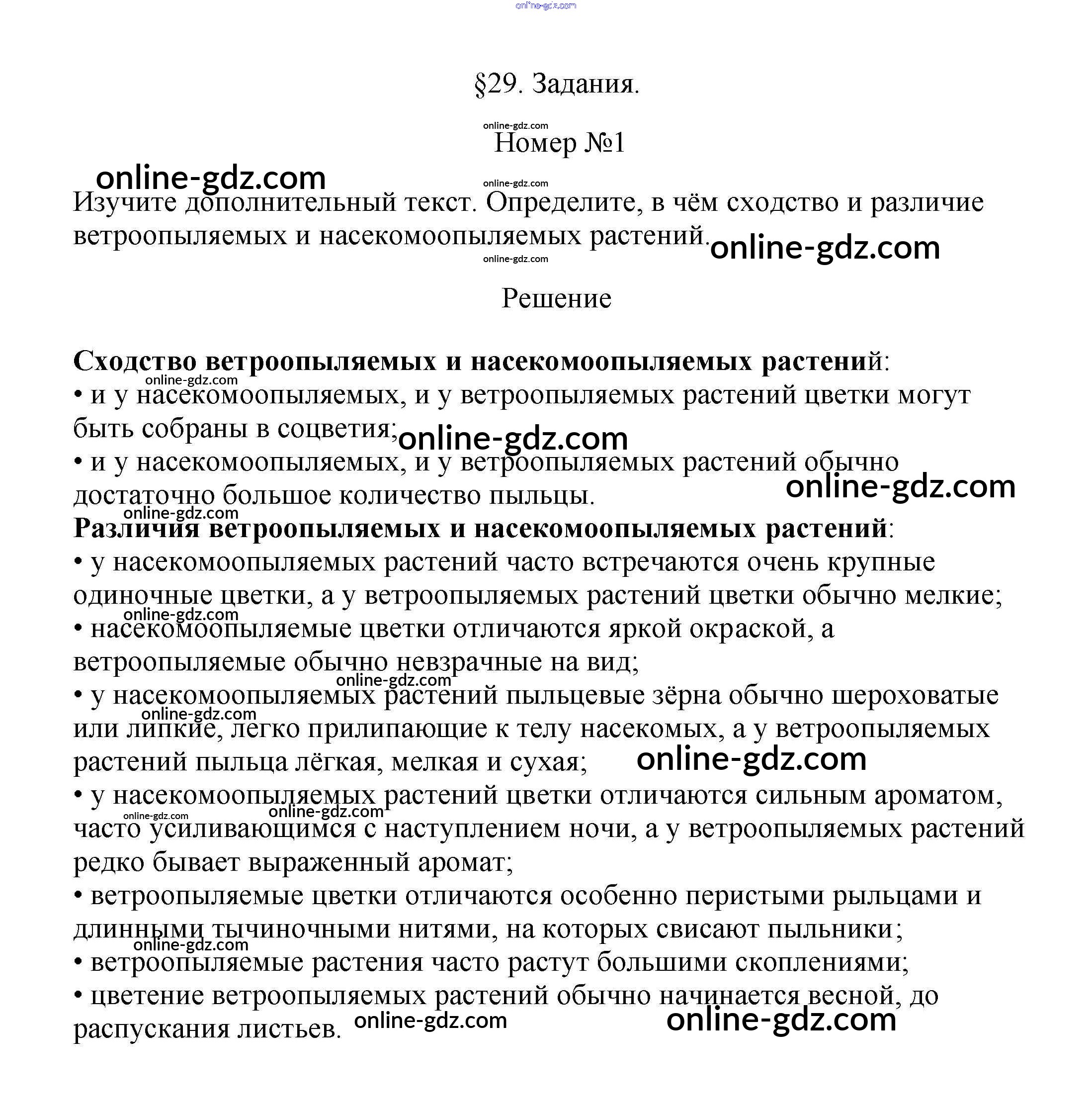 Готовые домашние задания по Биологии за 6 класс Учебник Пасечник Линейный курс 2020 - Задания §29. Половое размножение покрытосеменных растений 1