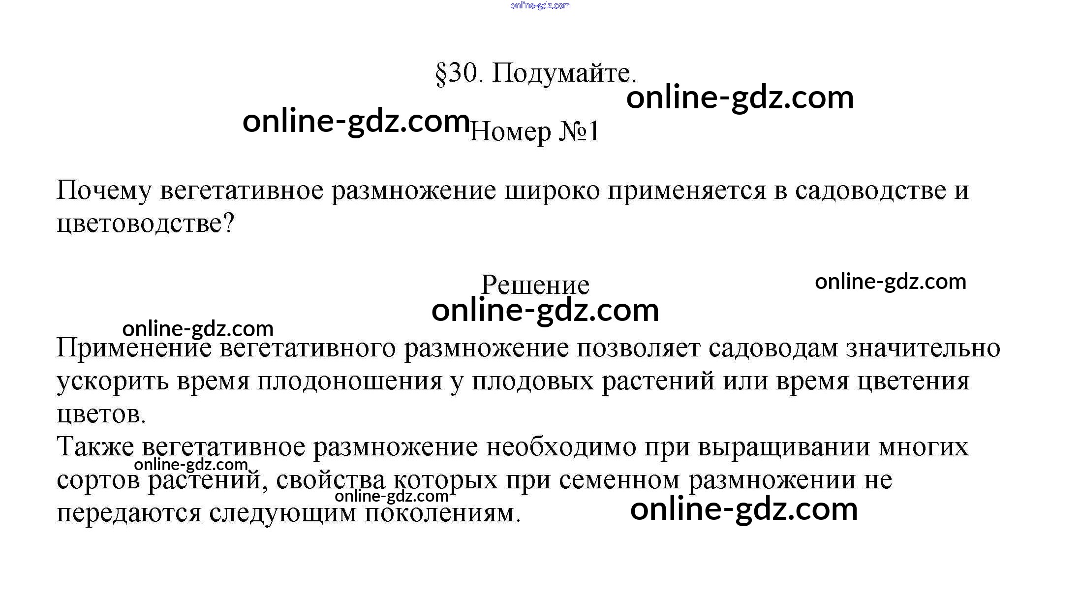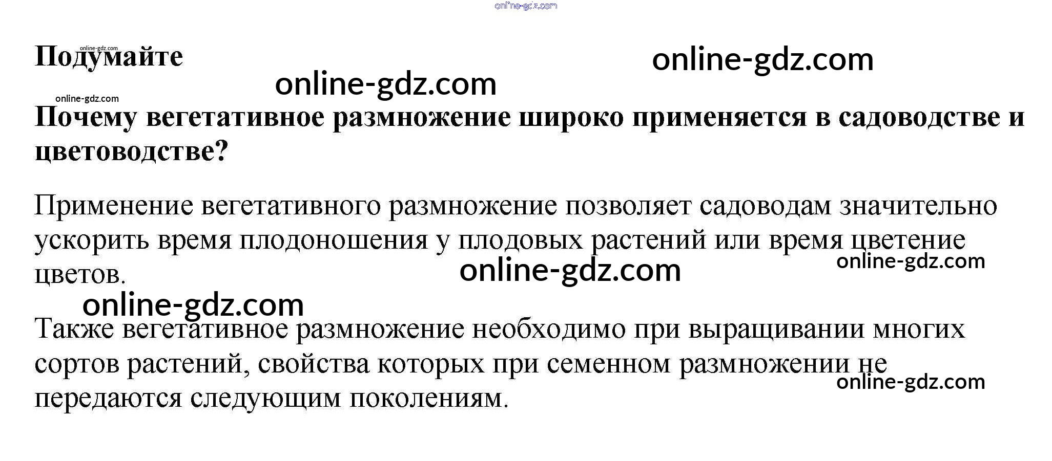 Готовые домашние задания по Биологии за 6 класс Учебник Пасечник Линейный курс 2020 - Подумайте §30. Вегетативное размножение покрытосеменных растений 1