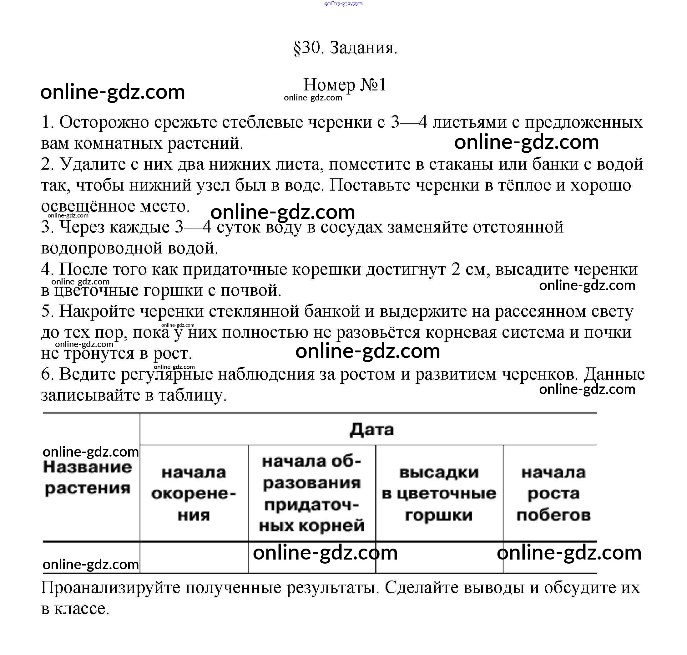 Готовые домашние задания по Биологии за 6 класс Учебник Пасечник Линейный курс 2020 - Задания §30. Вегетативное размножение покрытосеменных растений 1