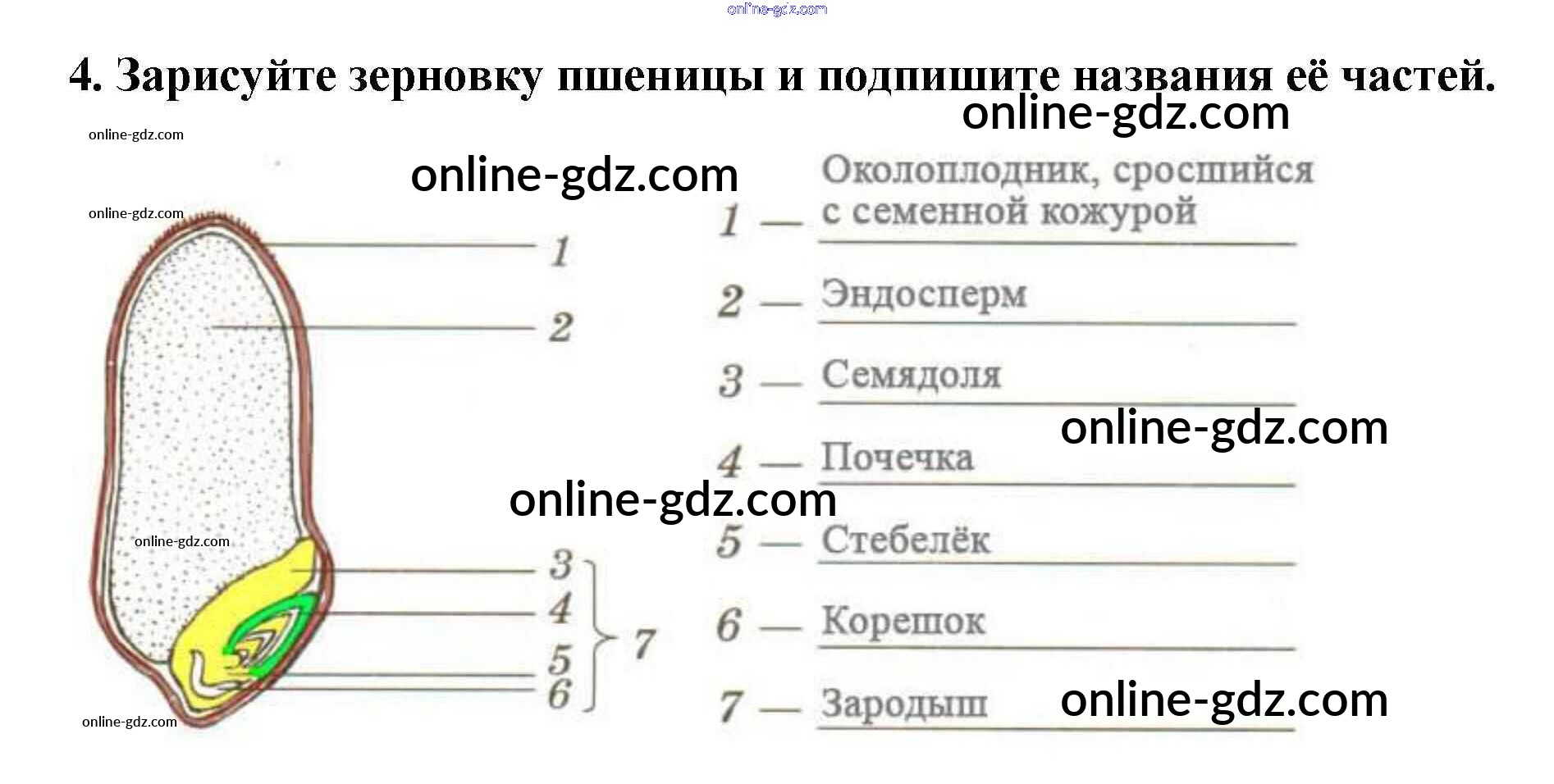 Готовые домашние задания по Биологии за 6 класс Учебник Пасечник Вертикаль 2014 - Строение зерновки пшеницы §1. Строение семян 4