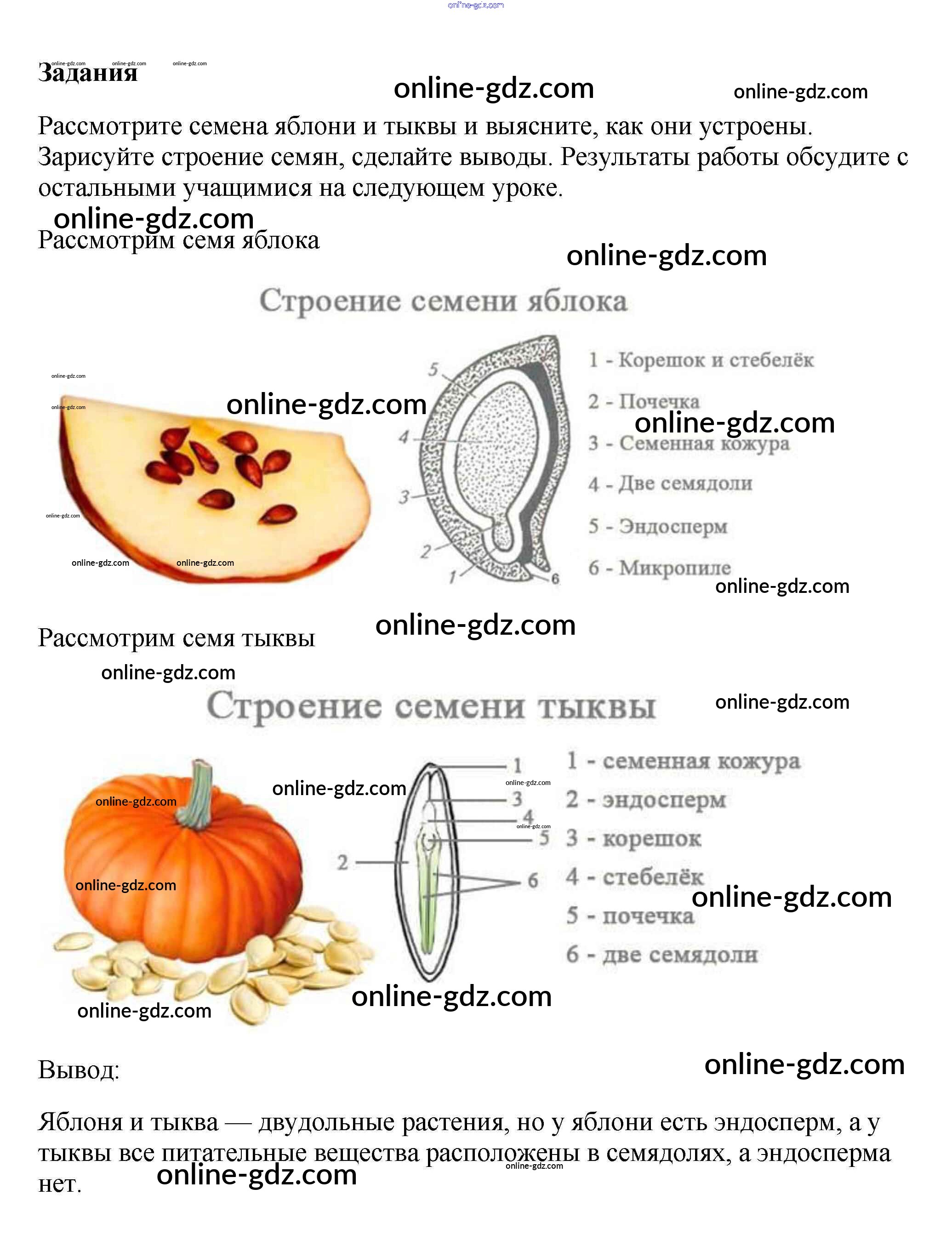 Готовые домашние задания по Биологии за 6 класс Учебник Пасечник Вертикаль 2014 - Задания §1. Строение семян 1