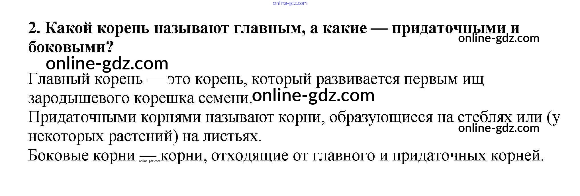 Готовые домашние задания по Биологии за 6 класс Учебник Пасечник Вертикаль 2014 - Вопросы в конце параграфа §2. Виды корней и типы корневых систем 2