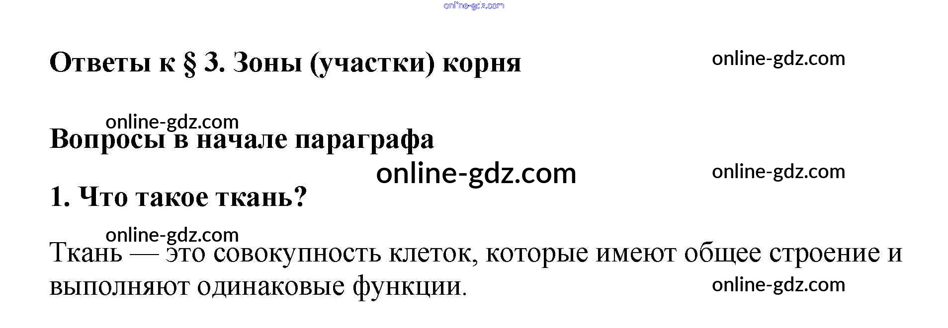 Готовые домашние задания по Биологии за 6 класс Учебник Пасечник Вертикаль 2014 - Вопросы в начале параграфа §3. Зоны (участки) корня 1