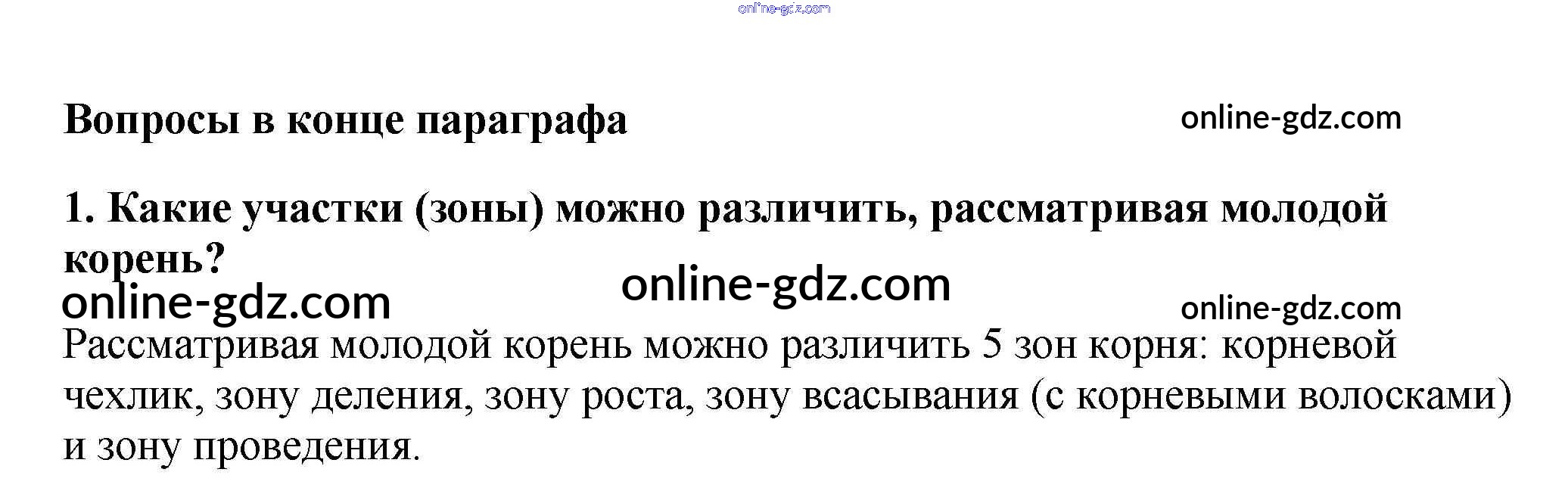 Готовые домашние задания по Биологии за 6 класс Учебник Пасечник Вертикаль 2014 - Вопросы в конце параграфа §3. Зоны (участки) корня 1