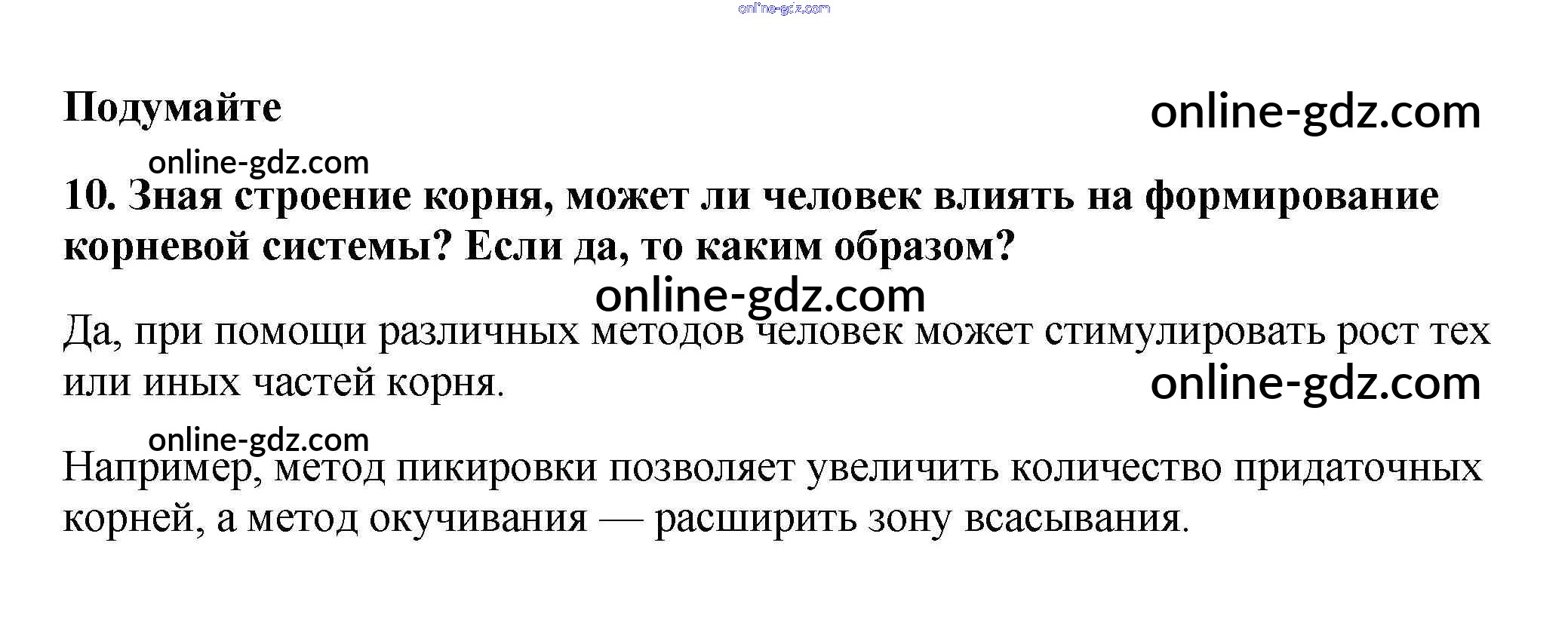Готовые домашние задания по Биологии за 6 класс Учебник Пасечник Вертикаль 2014 - Подумайте §3. Зоны (участки) корня 1