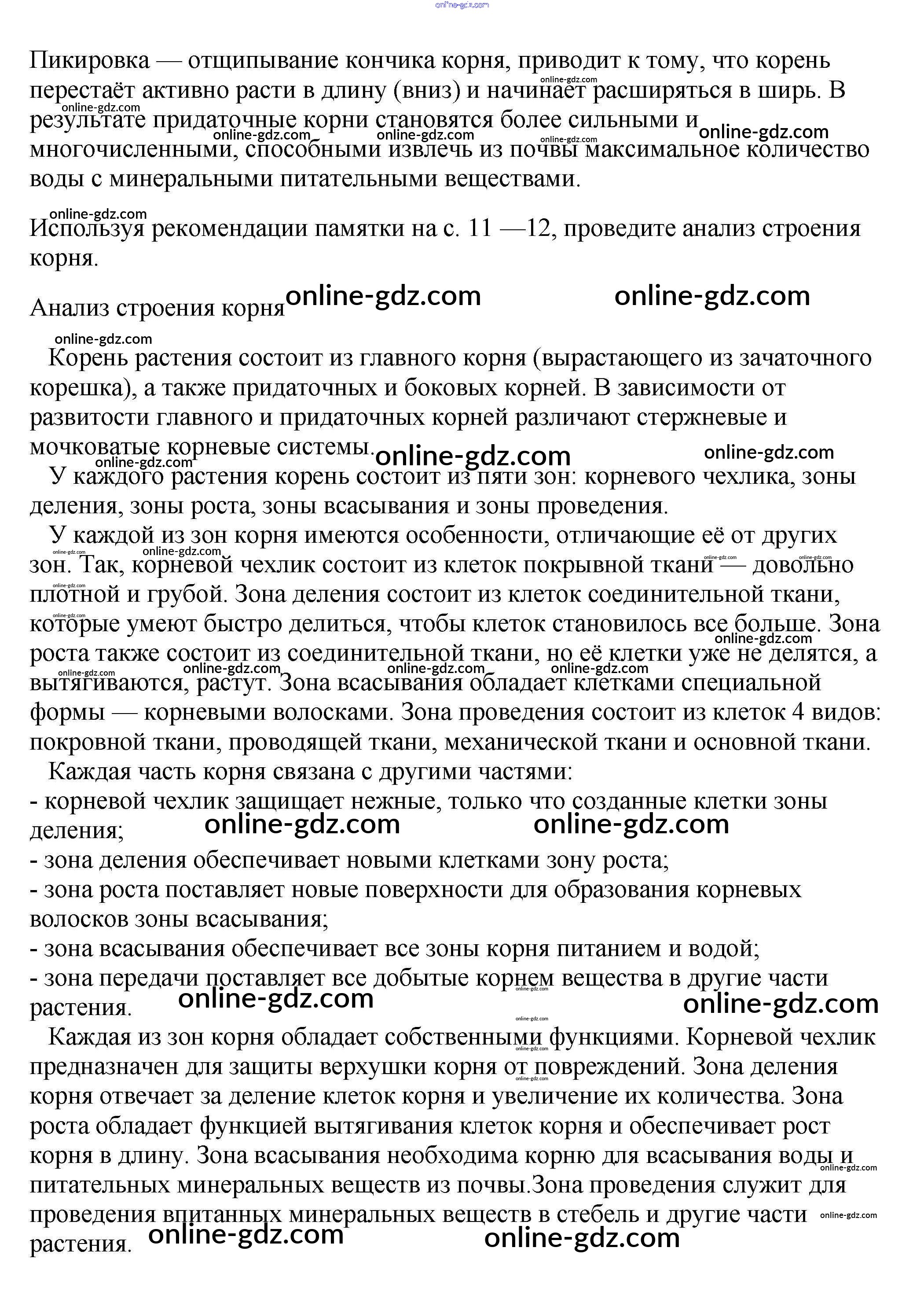 Готовые домашние задания по Биологии за 6 класс Учебник Пасечник Вертикаль 2014 - Задания §3. Зоны (участки) корня 1