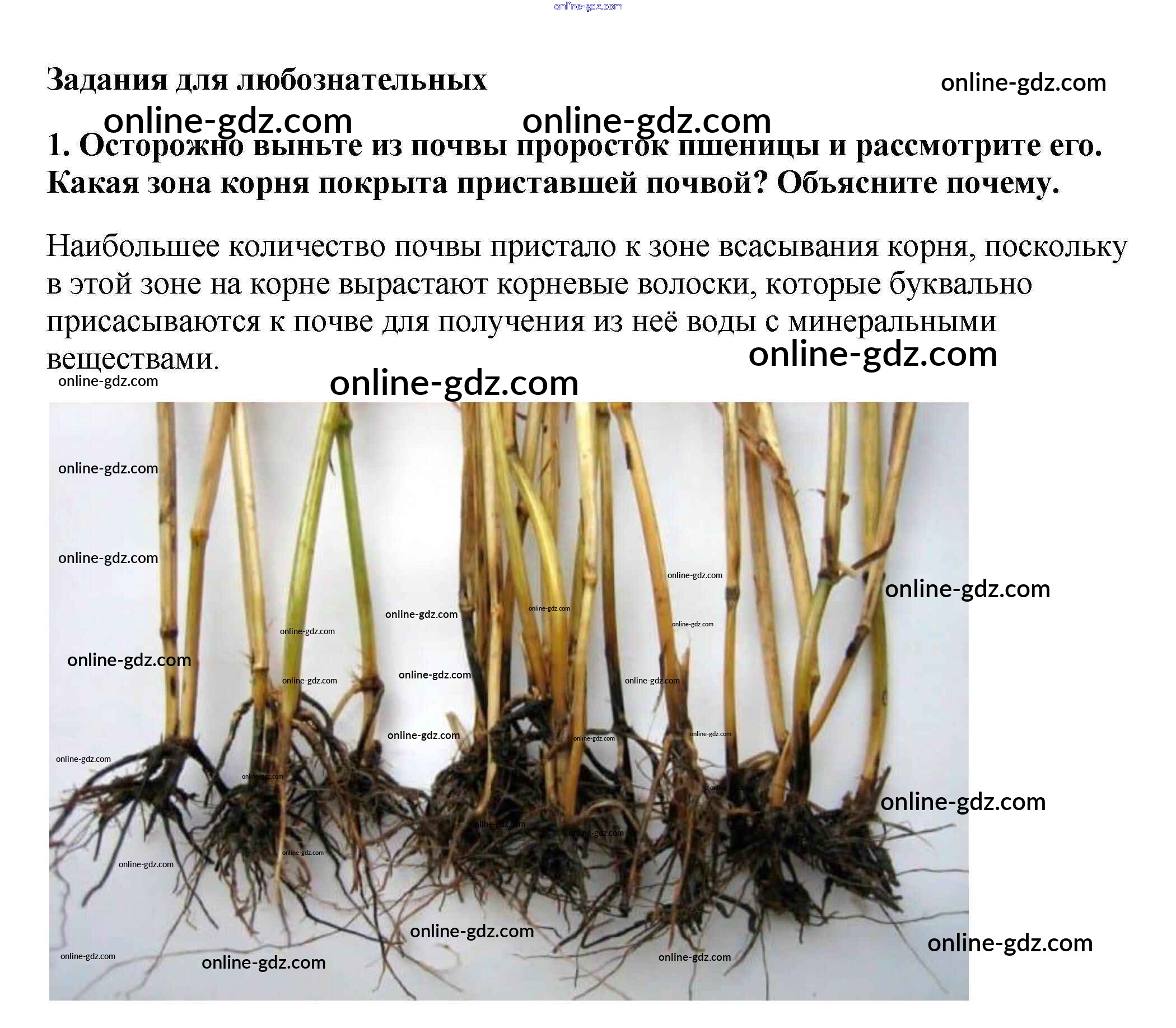 Готовые домашние задания по Биологии за 6 класс Учебник Пасечник Вертикаль 2014 - Задания для любознательных §3. Зоны (участки) корня 1