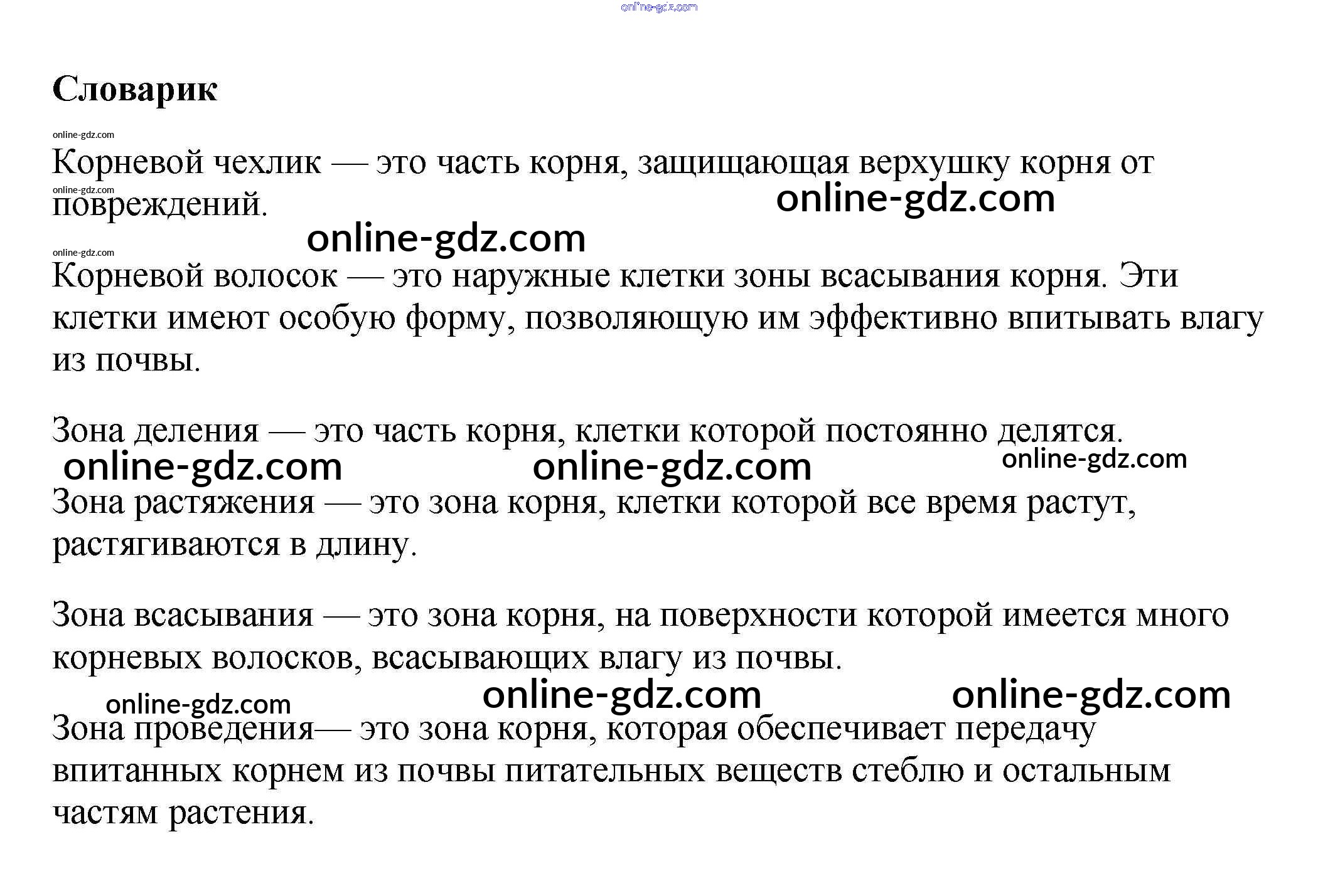 Готовые домашние задания по Биологии за 6 класс Учебник Пасечник Вертикаль 2014 - Словарик §3. Зоны (участки) корня 1