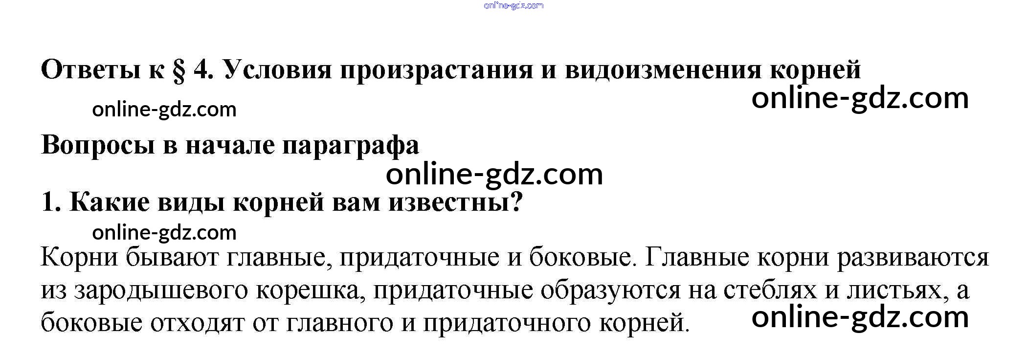 Готовые домашние задания по Биологии за 6 класс Учебник Пасечник Вертикаль 2014 - Вопросы в начале параграфа §4. Условия произрастания и видоизменения корней 1