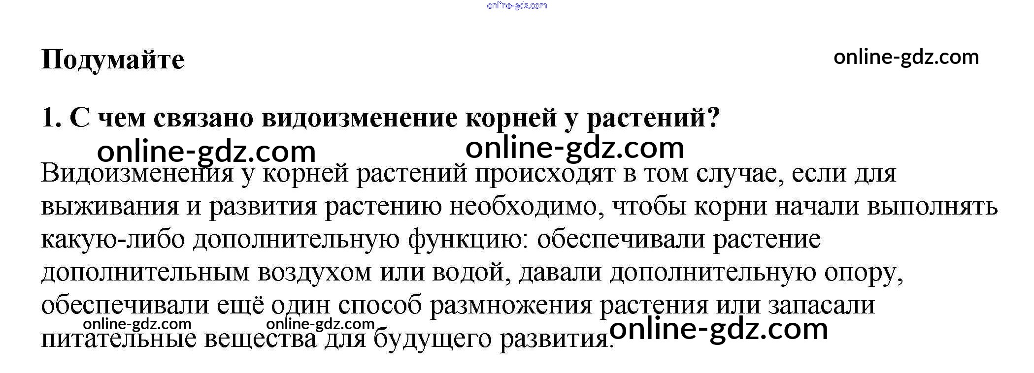 Готовые домашние задания по Биологии за 6 класс Учебник Пасечник Вертикаль 2014 - Подумайте §4. Условия произрастания и видоизменения корней 1