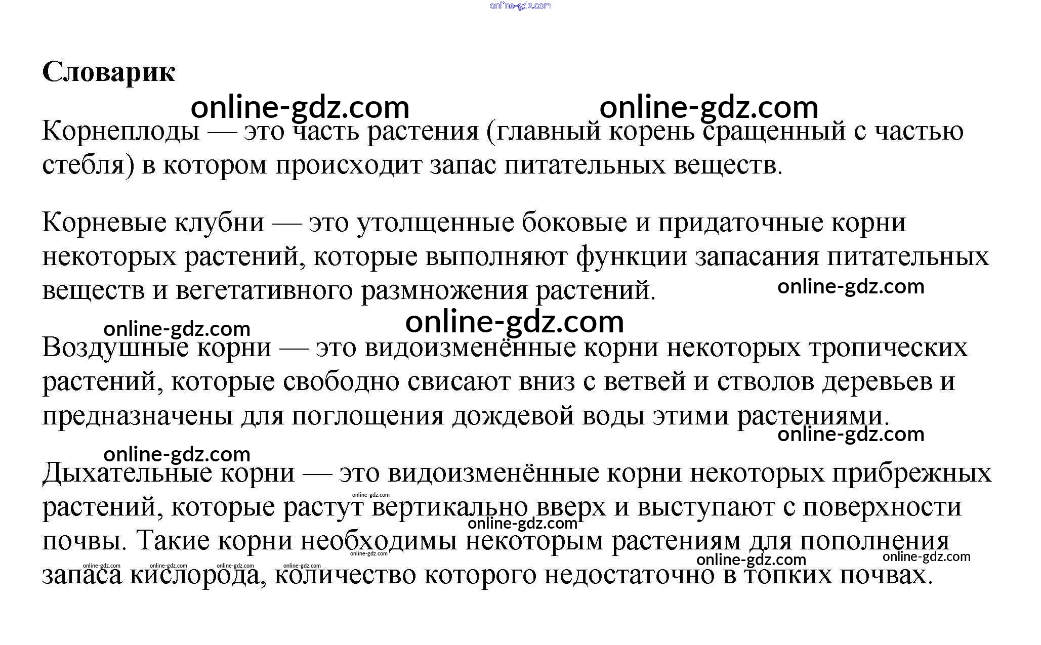 Готовые домашние задания по Биологии за 6 класс Учебник Пасечник Вертикаль 2014 - Словарик §4. Условия произрастания и видоизменения корней 1