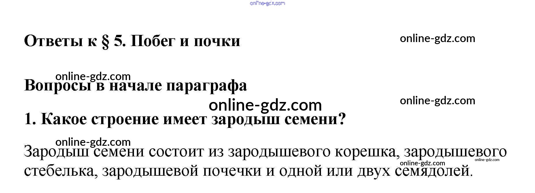 Готовые домашние задания по Биологии за 6 класс Учебник Пасечник Вертикаль 2014 - Вопросы в начале параграфа §5. Побег и почки 1