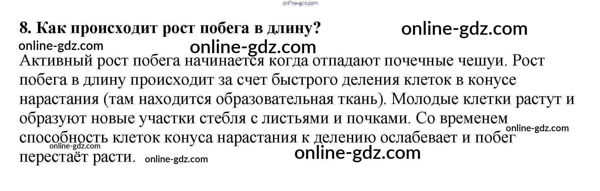 Готовые домашние задания по Биологии за 6 класс Учебник Пасечник Вертикаль 2014 - Вопросы в конце параграфа §5. Побег и почки 8