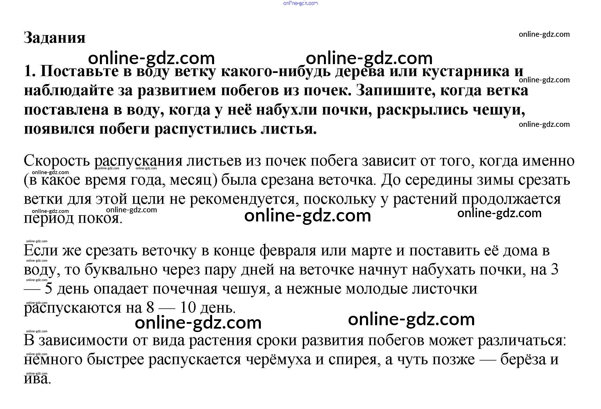 Готовые домашние задания по Биологии за 6 класс Учебник Пасечник Вертикаль 2014 - Задания §5. Побег и почки 1