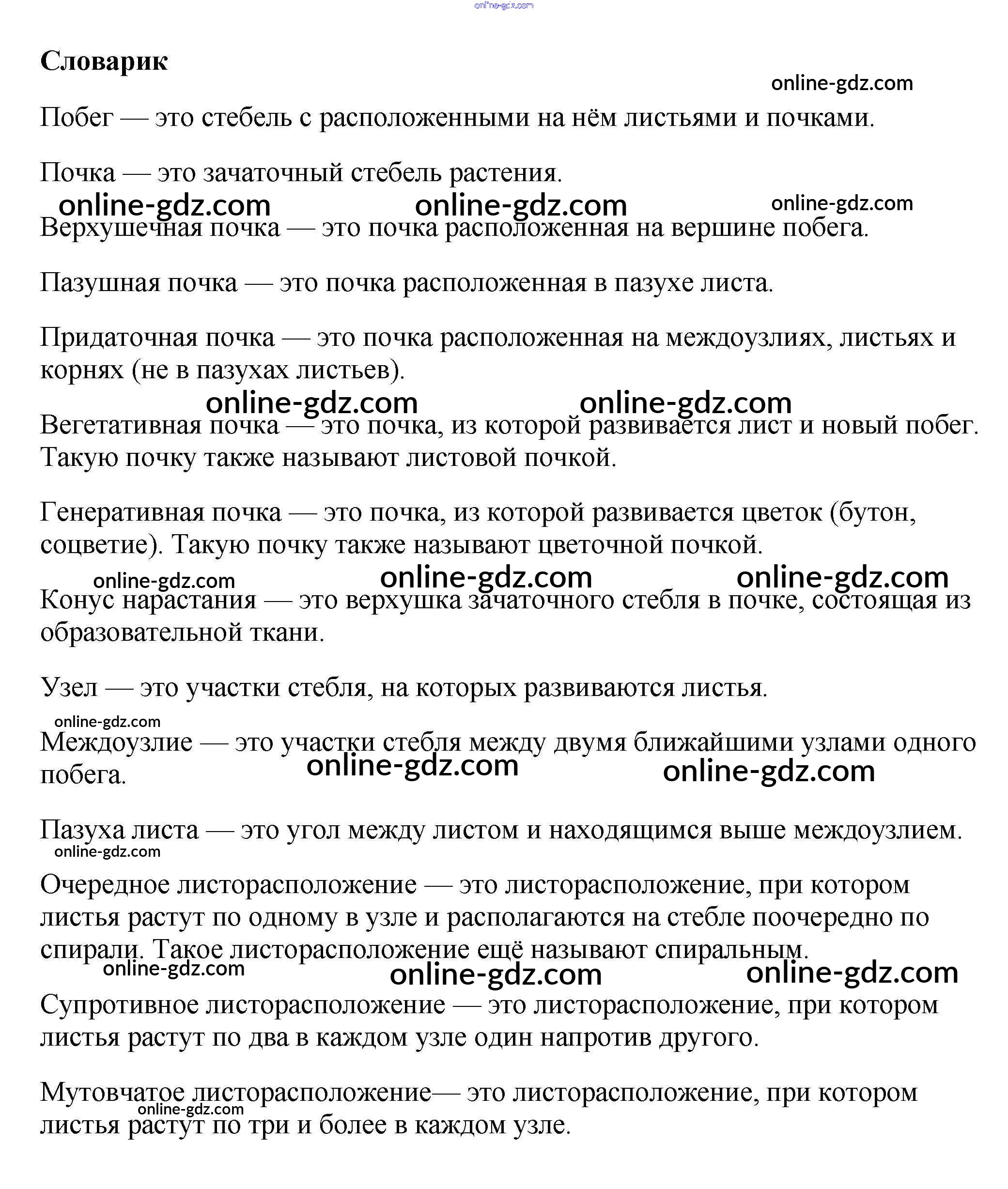 Готовые домашние задания по Биологии за 6 класс Учебник Пасечник Вертикаль 2014 - Словарик §5. Побег и почки 1