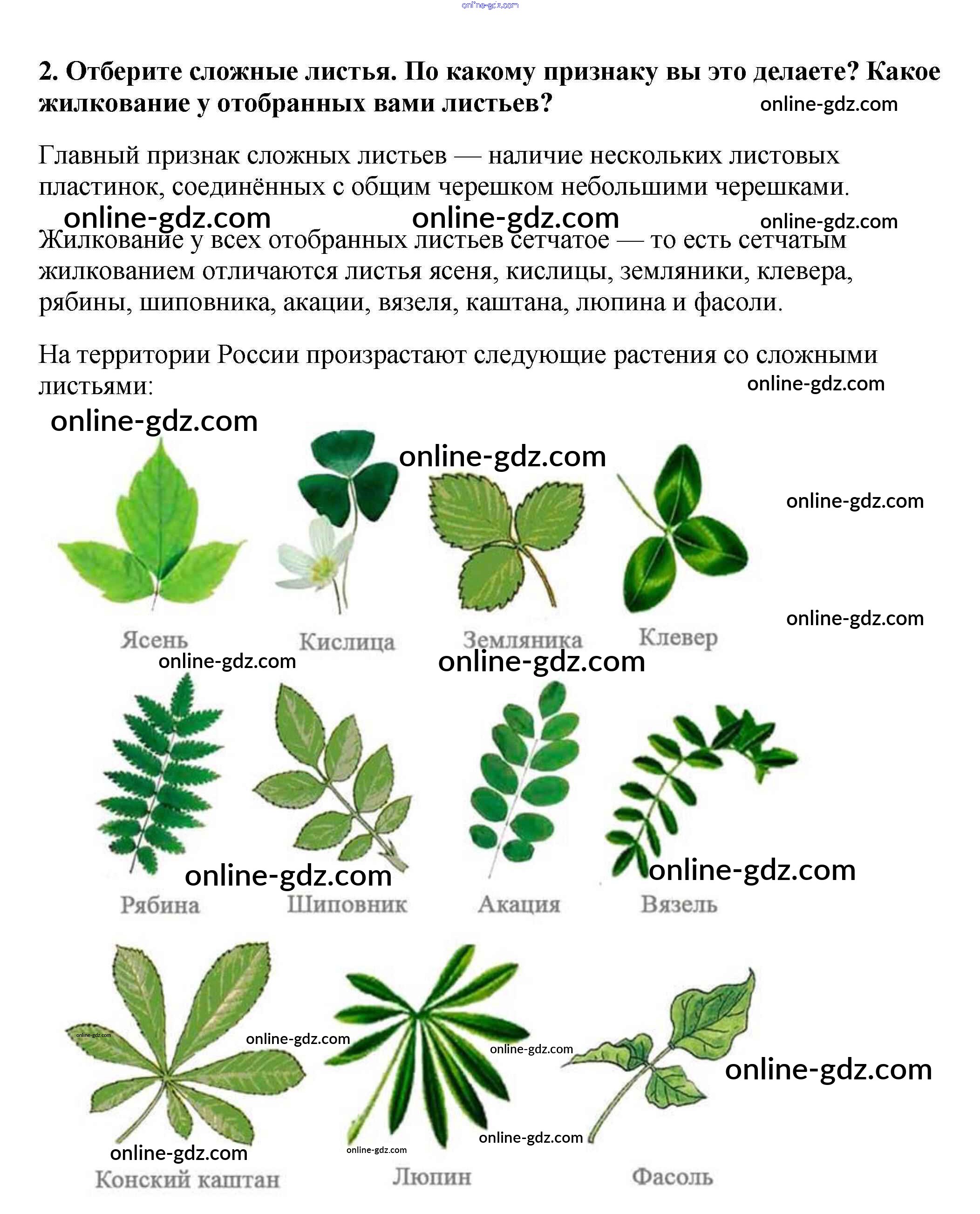 Готовые домашние задания по Биологии за 6 класс Учебник Пасечник Вертикаль 2014 - Листья простые и сложные, их жилкование и листорасположение §6. Внешнее строение листа 2