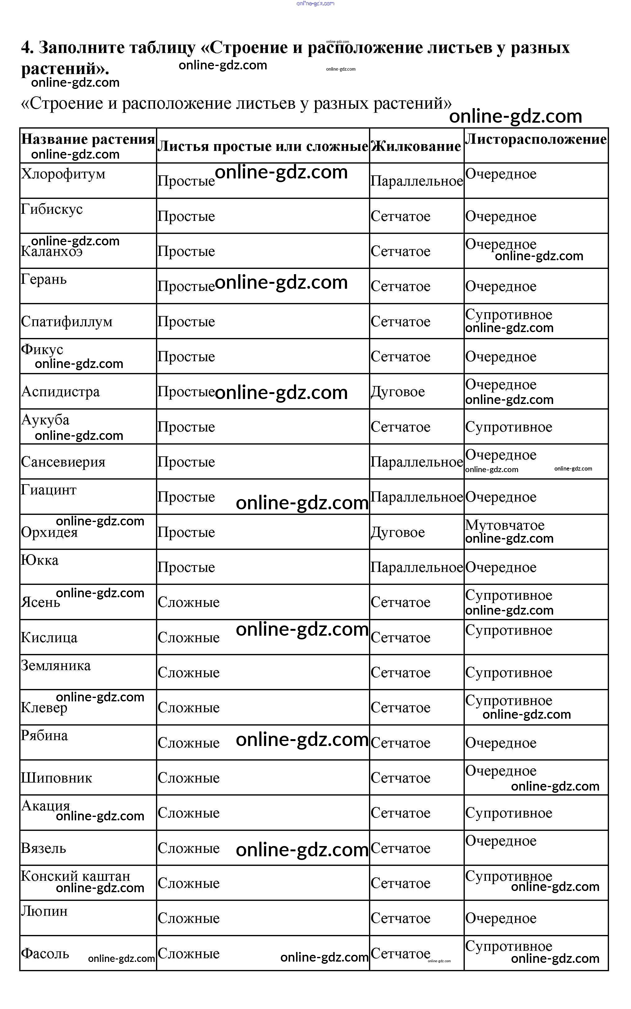 Готовые домашние задания по Биологии за 6 класс Учебник Пасечник Вертикаль 2014 - Листья простые и сложные, их жилкование и листорасположение §6. Внешнее строение листа 4