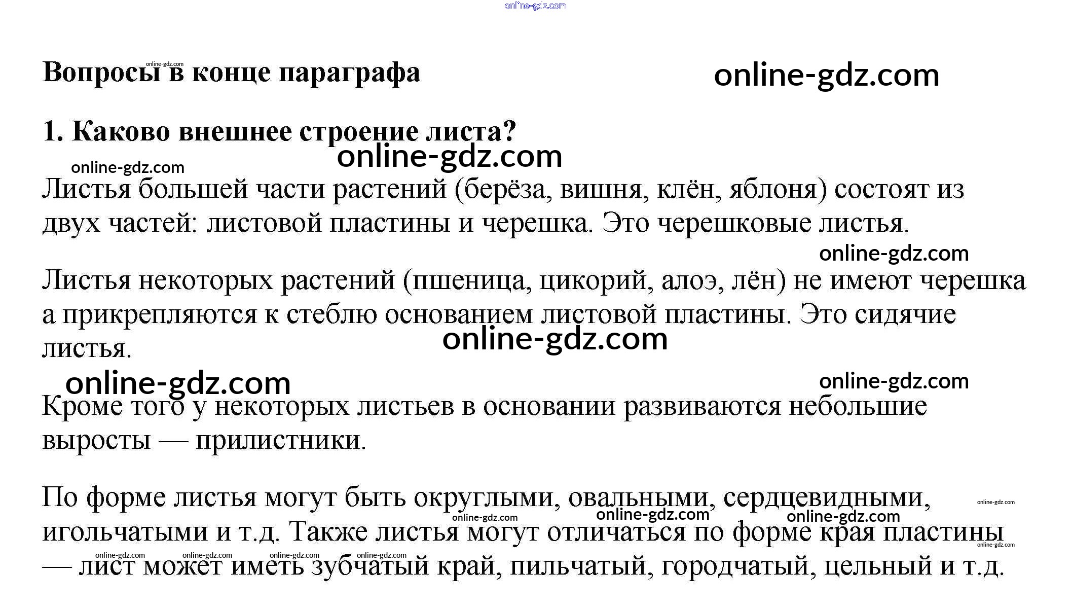 Готовые домашние задания по Биологии за 6 класс Учебник Пасечник Вертикаль 2014 - Вопросы в конце параграфа §6. Внешнее строение листа 1