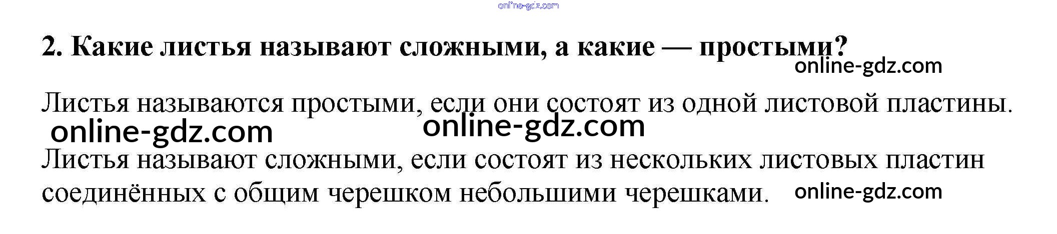 Готовые домашние задания по Биологии за 6 класс Учебник Пасечник Вертикаль 2014 - Вопросы в конце параграфа §6. Внешнее строение листа 2