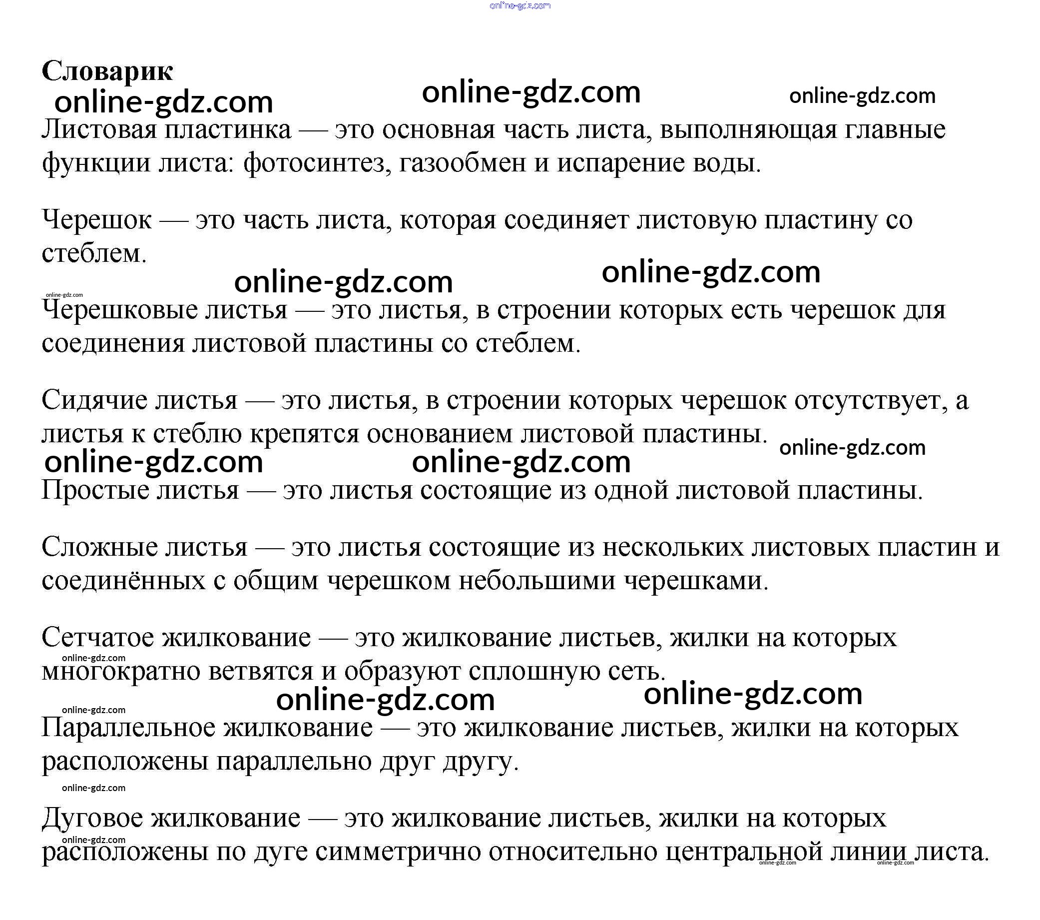 Готовые домашние задания по Биологии за 6 класс Учебник Пасечник Вертикаль 2014 - Словарик §6. Внешнее строение листа 1