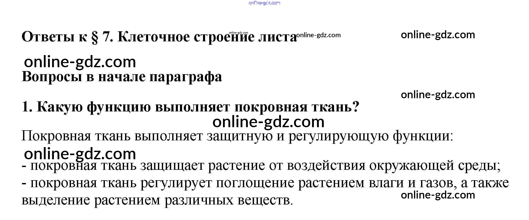 Готовые домашние задания по Биологии за 6 класс Учебник Пасечник Вертикаль 2014 - Вопросы в начале параграфа §7. Клеточное строение листа 1