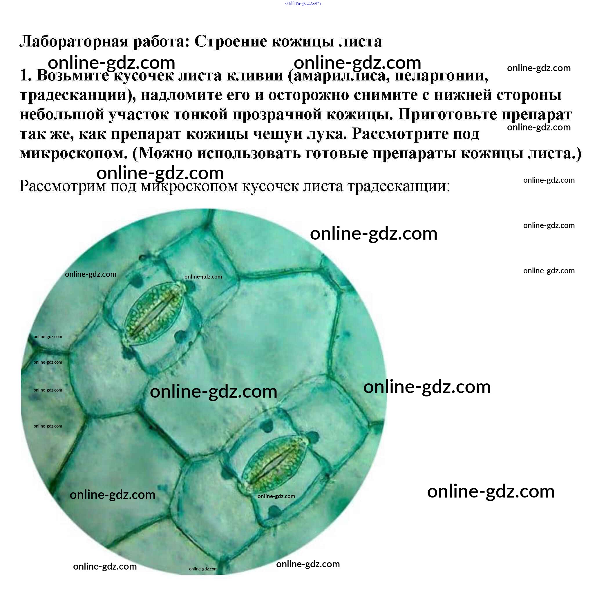 Готовые домашние задания по Биологии за 6 класс Учебник Пасечник Вертикаль 2014 - Строение кожицы листа §7. Клеточное строение листа 1