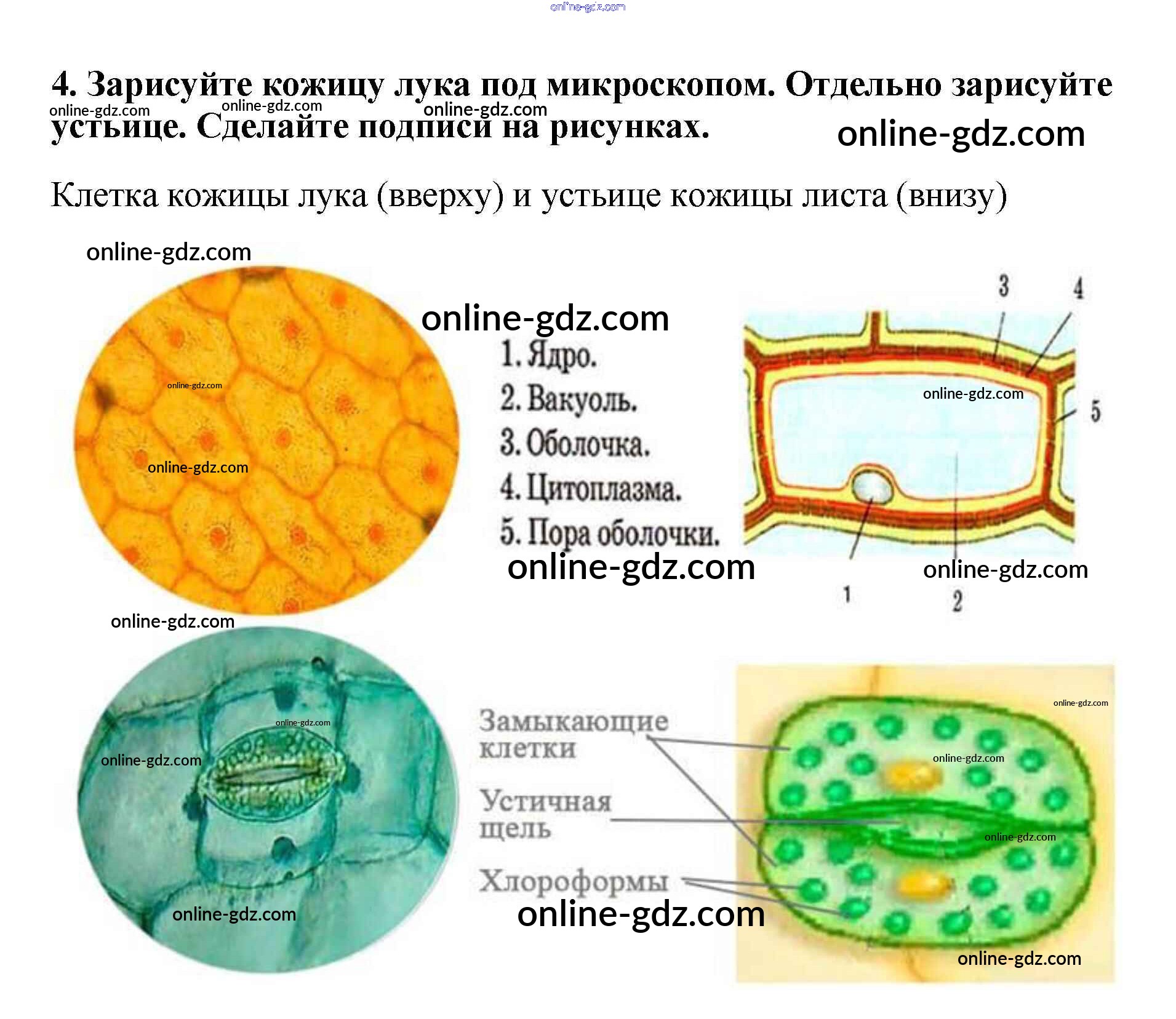 Готовые домашние задания по Биологии за 6 класс Учебник Пасечник Вертикаль 2014 - Строение кожицы листа §7. Клеточное строение листа 4