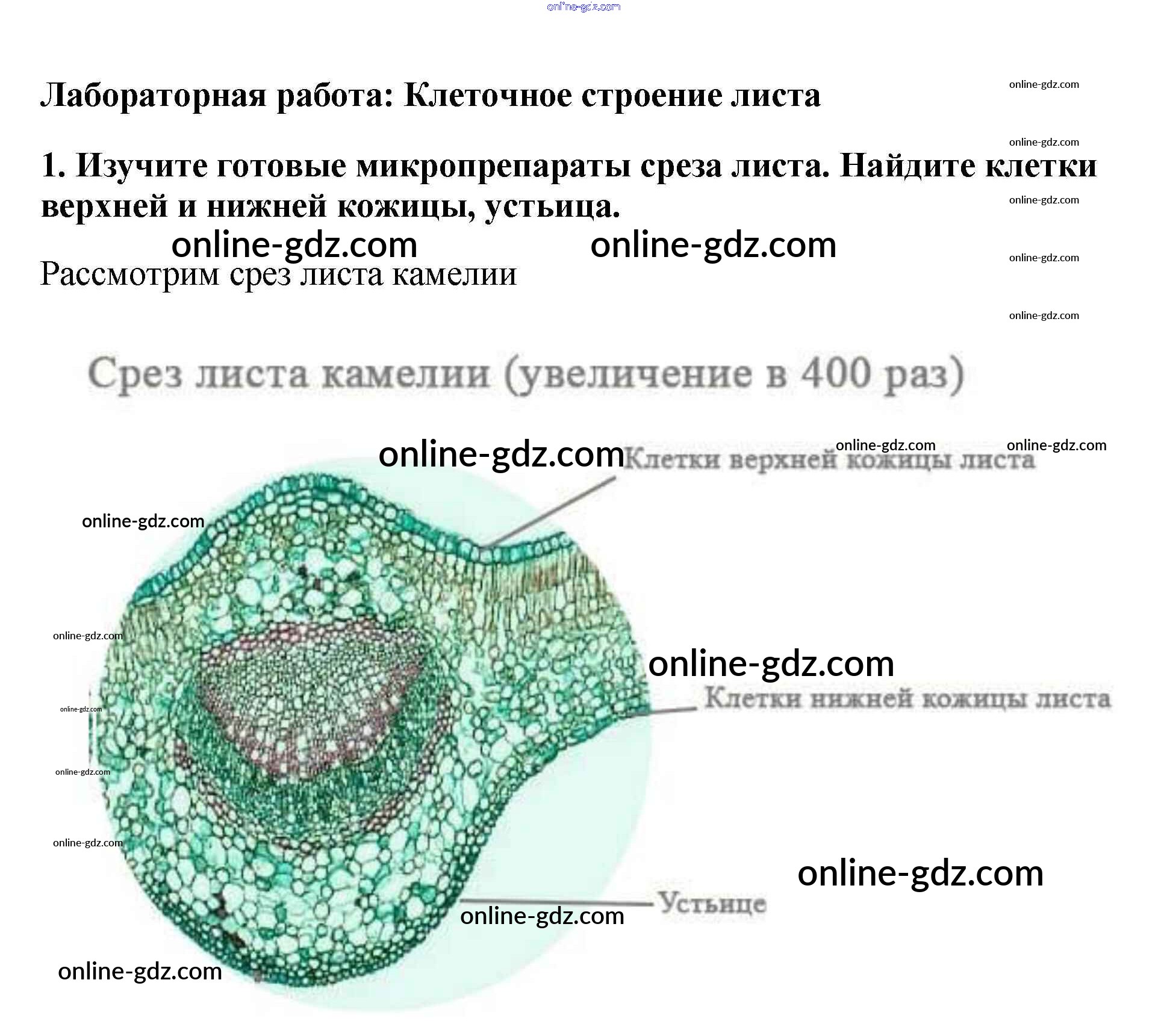 Готовые домашние задания по Биологии за 6 класс Учебник Пасечник Вертикаль 2014 - Клеточное строение листа §7. Клеточное строение листа 1